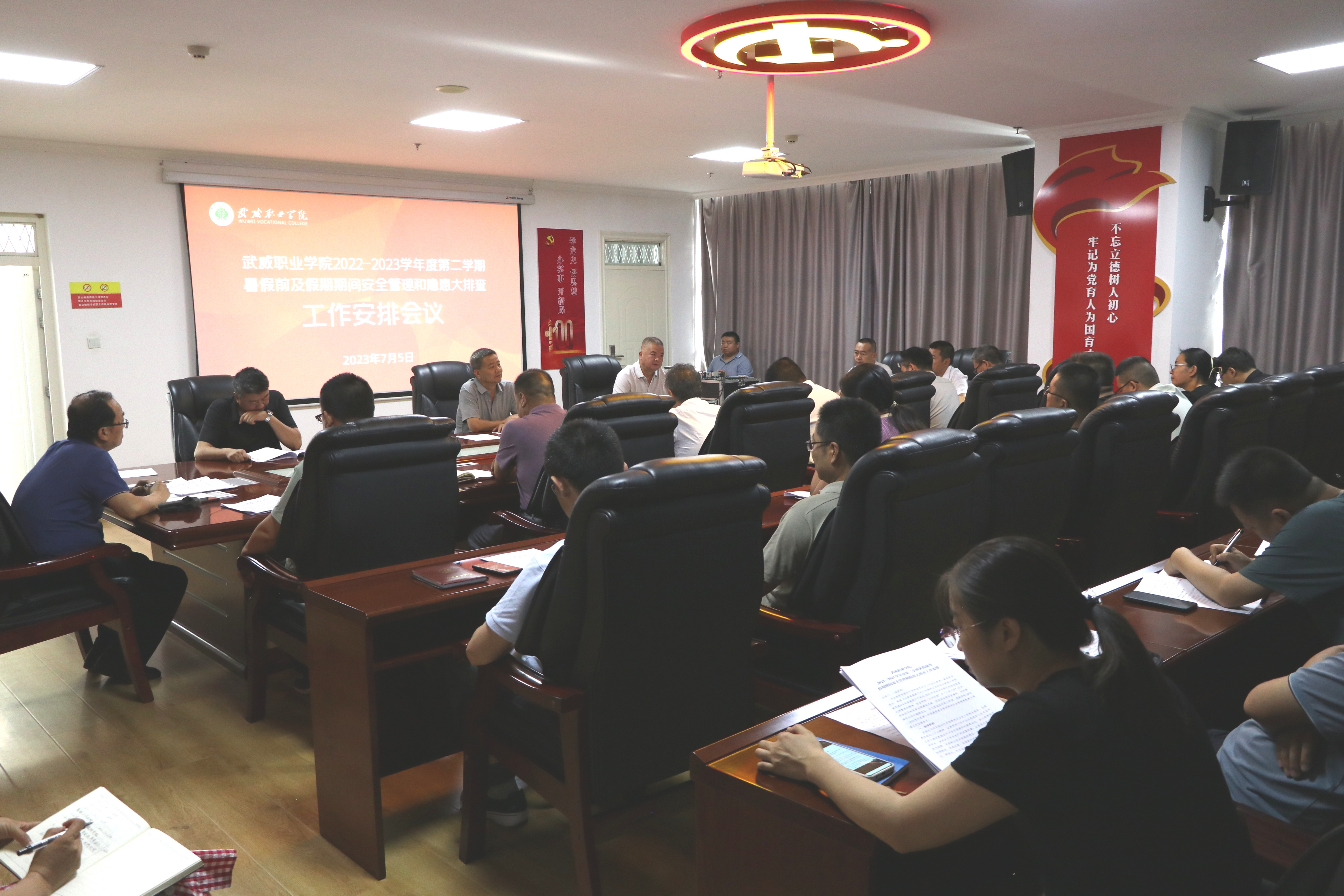 7月5日下午,學(xué)校暑假前及暑假期間安全管理工作會議在能源科技樓810會議室召開。學(xué)校黨委書記、校長趙明,學(xué)校黨委委員、副校長王守云出席會議,各部門負(fù)責(zé)人及各二級學(xué)院黨總支書記參加會議,會議由趙明主持。