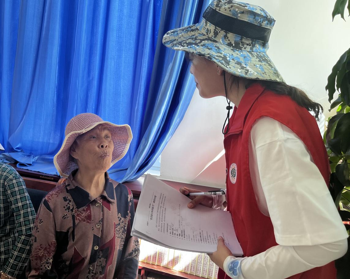 圖為實(shí)踐隊(duì)員對留守婦女普通話使用情況進(jìn)行調(diào)研