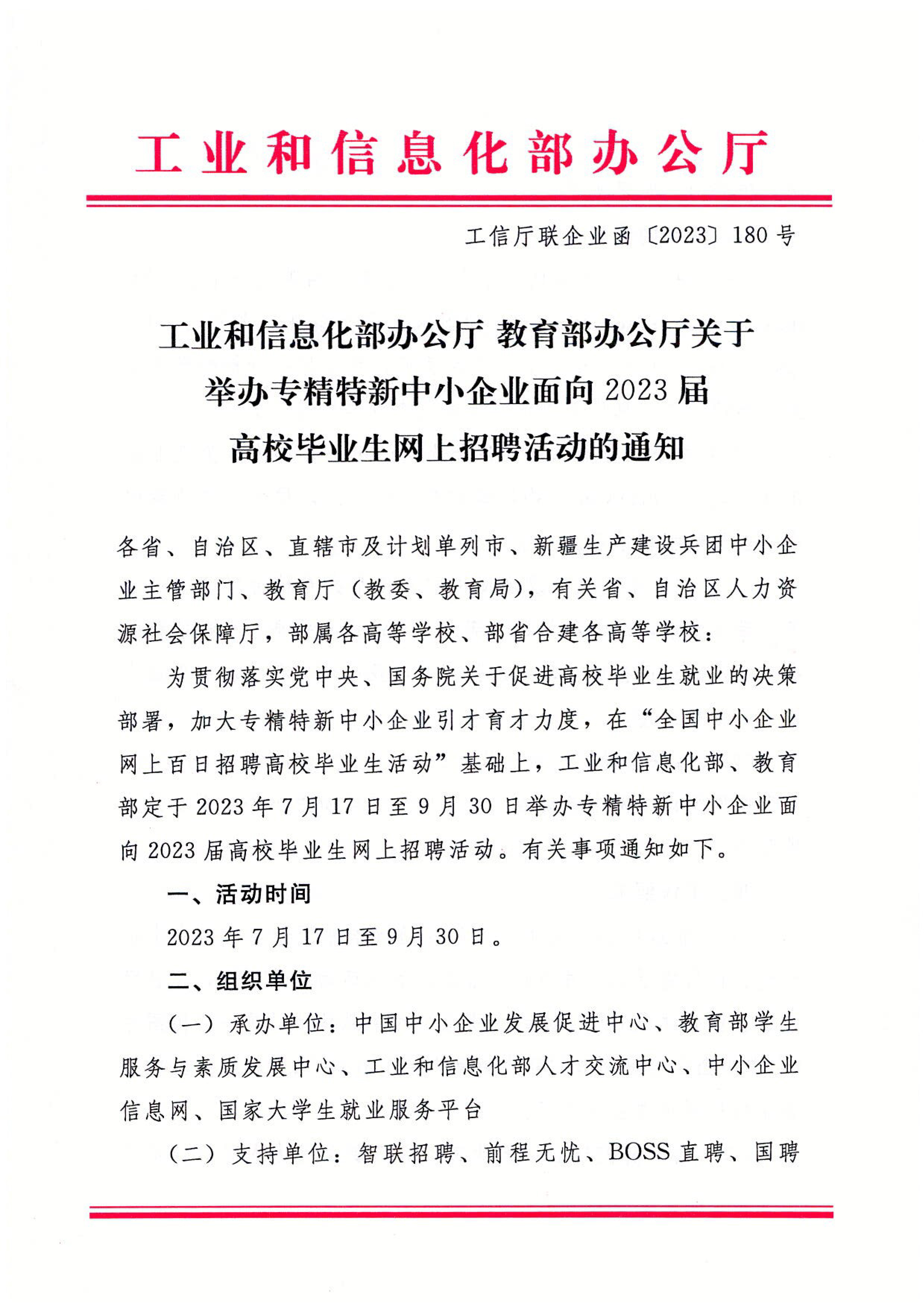 關(guān)于舉辦專精特新中小企業(yè)面向2023屆高校畢業(yè)生網(wǎng)上招聘活動的通知