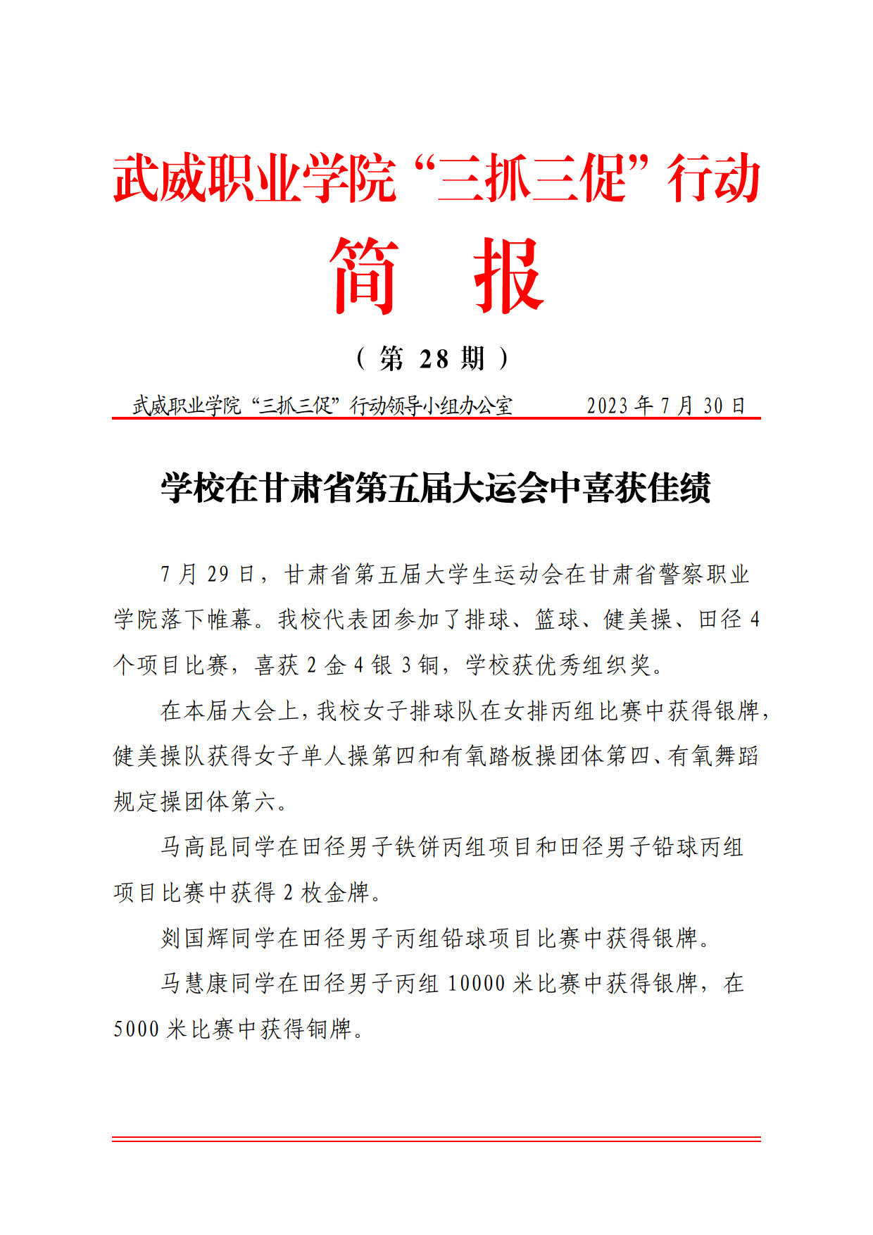 簡報(bào)第28期:學(xué)校在甘肅省第五屆大運(yùn)會(huì)中喜獲佳績