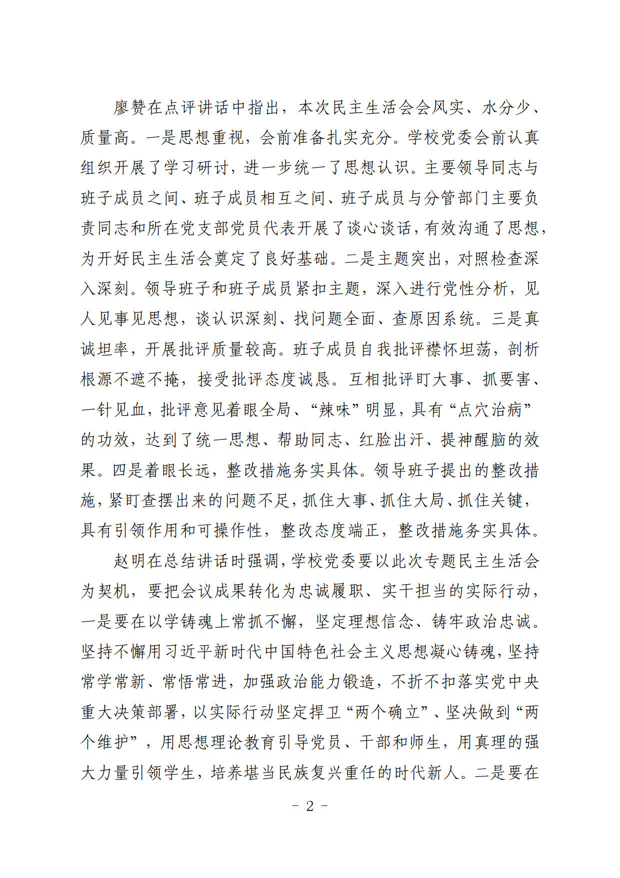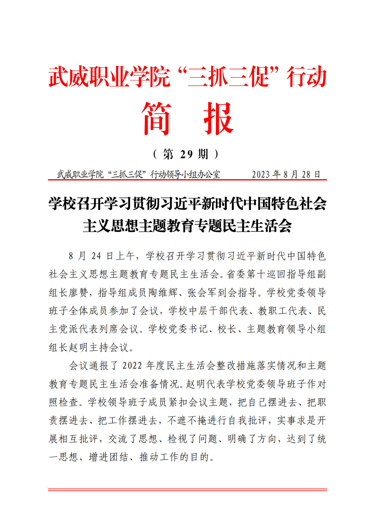 簡報(bào)第29期:學(xué)校召開學(xué)習(xí)貫徹習(xí)近平新時(shí)代中國特色社會主義思想主題教育專題民主生活會
