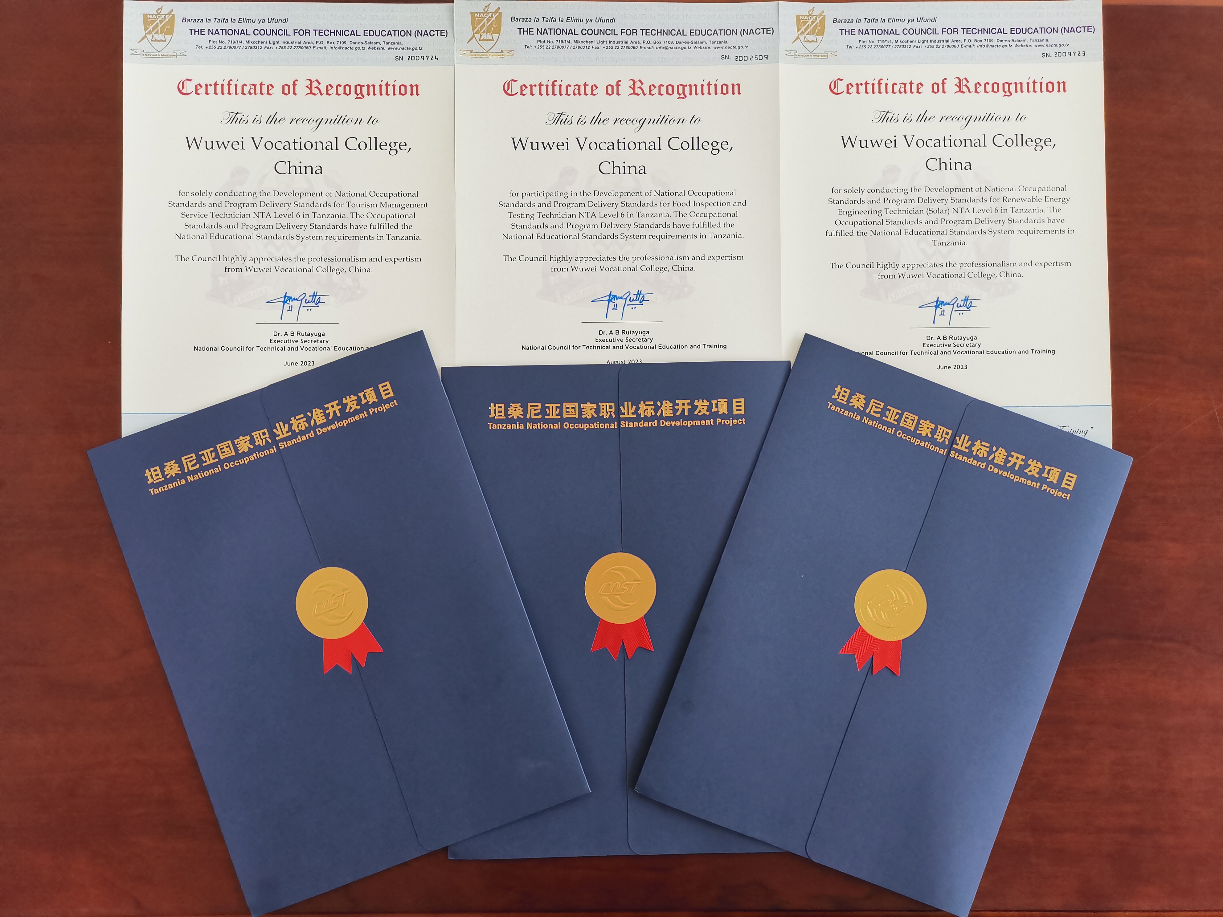 2022年9月,學(xué)校推薦旅游管理服務(wù)技術(shù)員6級(jí)、新能源工程技術(shù)員(太陽(yáng)能)6級(jí)、食品檢驗(yàn)檢測(cè)員6級(jí)三項(xiàng)職業(yè)標(biāo)準(zhǔn)申報(bào)第二批“坦桑尼亞國(guó)家職業(yè)標(biāo)準(zhǔn)開(kāi)發(fā)項(xiàng)目”并成功獲得立項(xiàng)。項(xiàng)目啟動(dòng)建設(shè)以來(lái),在中非職教聯(lián)盟、中坦雙方專家工作組、坦桑尼亞國(guó)家職業(yè)教育委員會(huì)的指導(dǎo)下,在學(xué)校堅(jiān)強(qiáng)有力領(lǐng)導(dǎo)下,經(jīng)濟(jì)管理學(xué)院、中科低碳新能源學(xué)院、現(xiàn)代農(nóng)業(yè)學(xué)院各自成立工作專班,結(jié)合實(shí)際制定項(xiàng)目實(shí)施計(jì)劃、實(shí)施方案,建立專項(xiàng)工作小組和工作機(jī)制,強(qiáng)化過(guò)程管理,確保后勤服務(wù),與坦桑尼亞國(guó)家職業(yè)教育委員會(huì)專家組進(jìn)行多輪次線上商討,經(jīng)過(guò)近一年的辛勤工作,形成了符合中國(guó)標(biāo)準(zhǔn),滿足坦桑尼亞需求的職業(yè)標(biāo)準(zhǔn),并配套提供與之相關(guān)的專業(yè)教學(xué)標(biāo)準(zhǔn),高質(zhì)量高標(biāo)準(zhǔn)完成項(xiàng)目建設(shè)。學(xué)校項(xiàng)目工作受到中非職教聯(lián)盟、坦桑尼亞國(guó)家職業(yè)教育委員會(huì)的高度肯定和贊揚(yáng)。