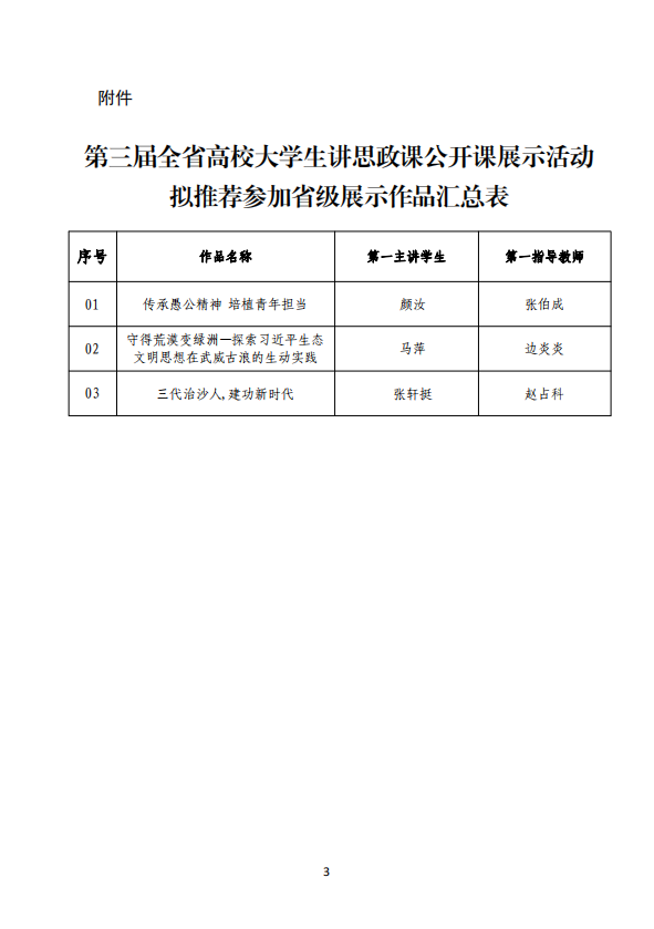 關于武威職業(yè)學院第三屆全省高校大學生講思政課公開課展示活動評選結果的公示
