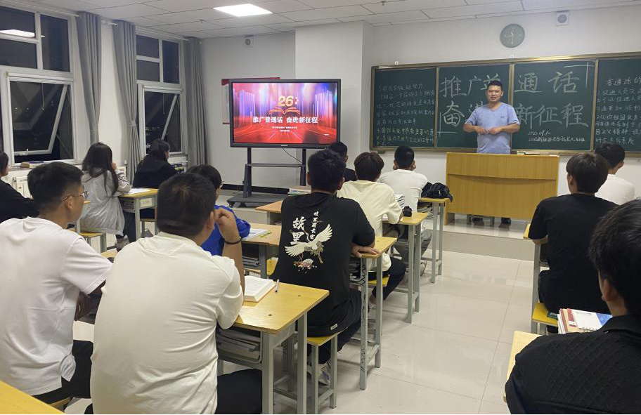 9月10日,學(xué)校開展了以“推廣普通話,奮進(jìn)新征程”為主題的班會,以班會形式拉開學(xué)校“第26屆推普周”的開幕式,班會上弘揚(yáng)社會主義核心價(jià)值觀、中國夢,對全校師生開展“推普”動員,號召全體師生積極參與到“推普”宣傳活動中,全面提高新時代國家通用語言文字普及程度和質(zhì)量。
