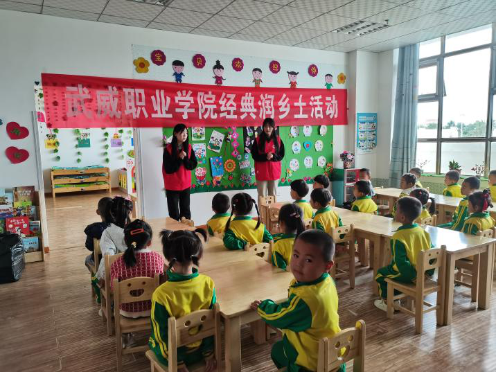 學(xué)校組織推普志愿團(tuán)隊(duì)學(xué)生赴古浪綠洲小鎮(zhèn)第一幼兒園開展了經(jīng)典浸潤?quán)l(xiāng)土特色幫扶活動,以經(jīng)典詩文、兒歌、紅歌等語言小游戲和幼兒進(jìn)行了互動,并發(fā)放文具等禮品,激發(fā)了小朋友同講普通話的興趣。