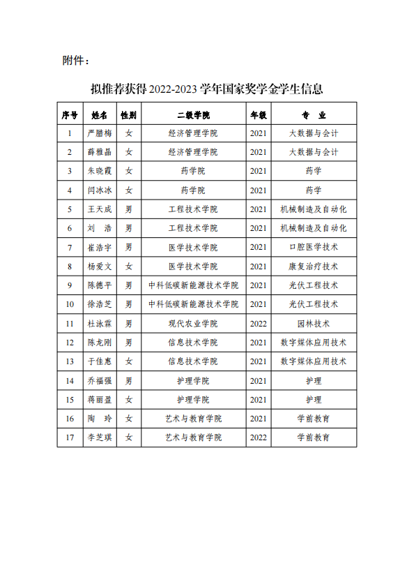 武威職業(yè)學(xué)院2022-2023學(xué)年國(guó)家獎(jiǎng)學(xué)金候選人公示