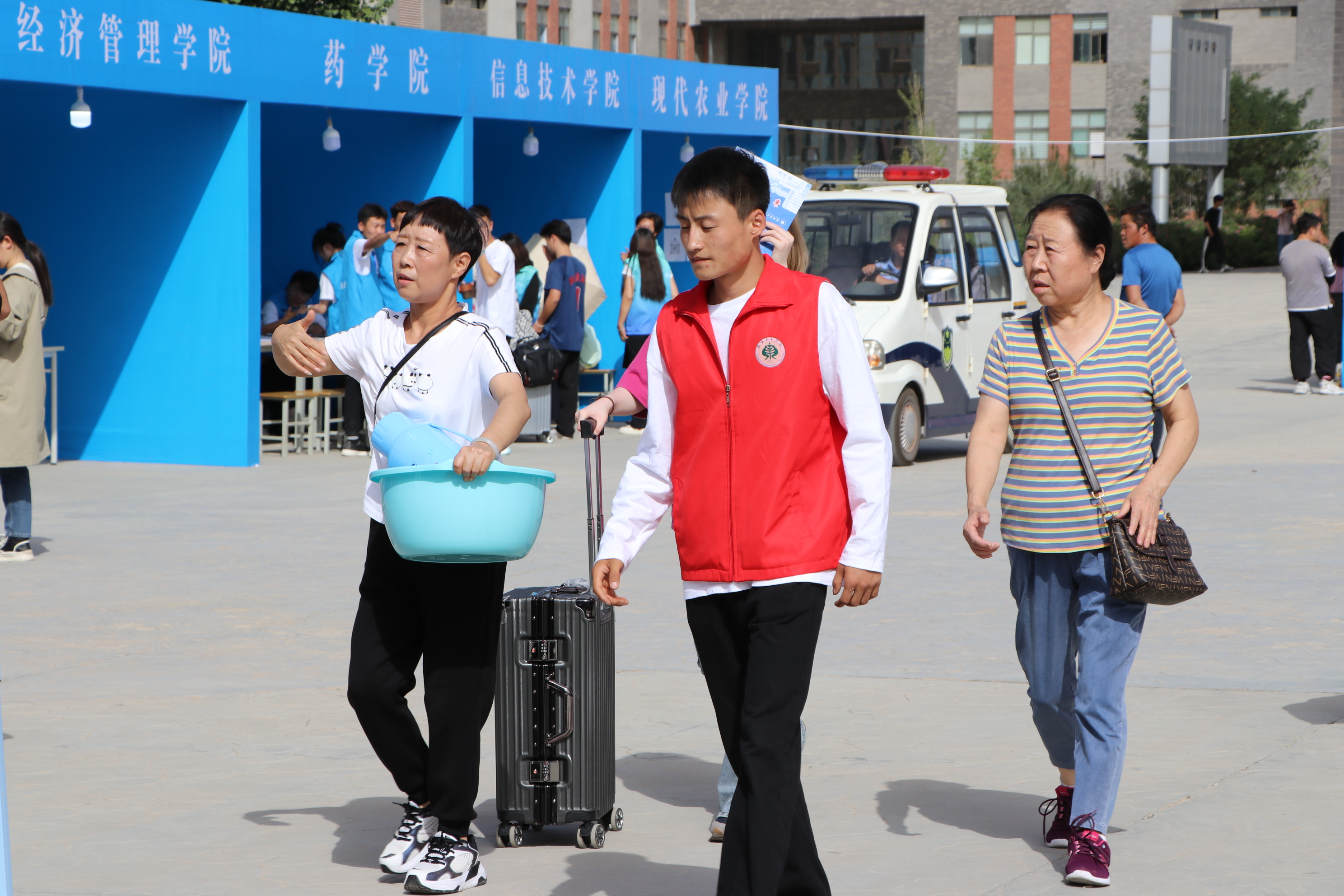 為做好迎新工作,學(xué)校各部門、二級學(xué)院精心組織,志愿者和工作人員為新生和家長提供細致周到的服務(wù),讓新生和家長第一時間就能感受到學(xué)校的熱情和暖心。校內(nèi)迎新站點前,一輛輛行李車、小推車虛位以待,志愿者們有條不紊,熱情洋溢,為新生提供一站式服務(wù),并耐心為家長答疑解惑。學(xué)校開通“綠色通道”,推出資助政策和各項措施,確保每一位新生安心入學(xué)、舒心生活。LED大屏滾動播放學(xué)校2023年新生實時報到數(shù)據(jù),讓新生和家長及時了解學(xué)校和報到情況。