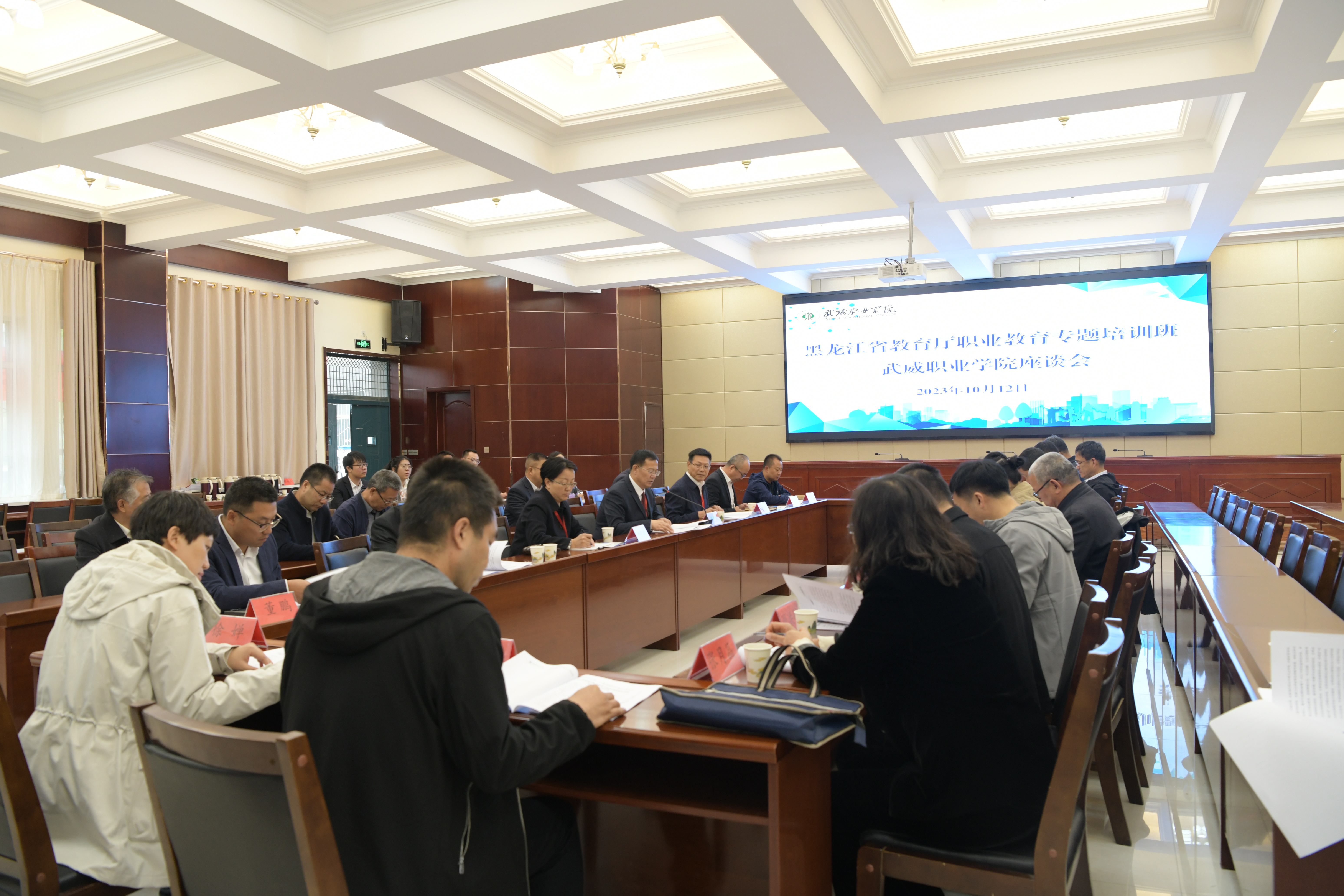 10月12日下午,黑龍江省教育廳職業(yè)教育專題培訓班學員來??疾煺{研。校長、黨委副書記張開禮,黨委委員、副校長王永緒、田迎春陪同調研。