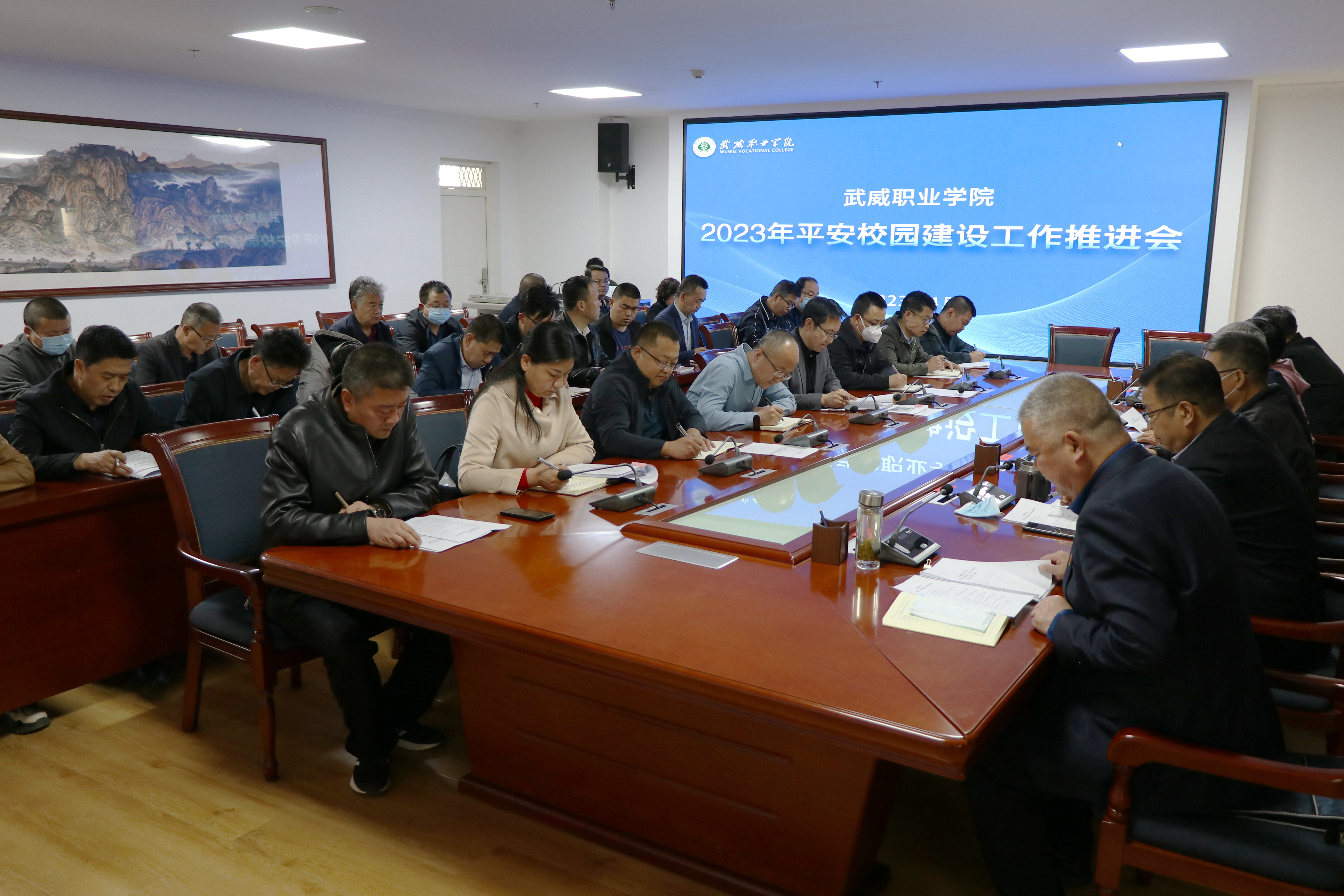 趙明與各部門(mén)、二級(jí)學(xué)院簽訂了2023年平安校園建設(shè)工作目標(biāo)責(zé)任書(shū)。王守云結(jié)合學(xué)校實(shí)際,對(duì)2023年平安校園建設(shè)工作作了安排。
