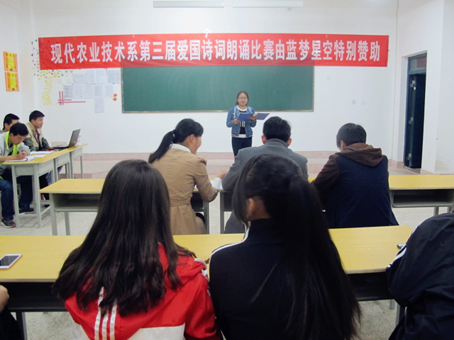 為紀念“紅軍長征勝利80周年”,鼓勵我系大學生用語言傳播民族文化、塑造民族精神,展現(xiàn)新時期大學生的精神風貌,近日,現(xiàn)代農業(yè)技術系團總支組織各班團支部開展了“我的中國夢”經典愛國詩文誦讀比賽。