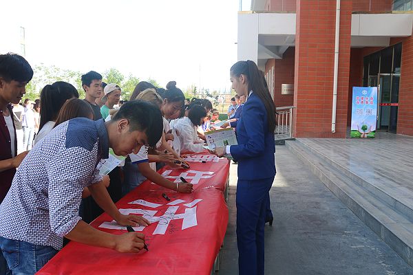 活動中,王主瑞介紹了我國禁毒工作的基本情況和面臨的嚴峻形勢,強調(diào)了青年毒品預防的重要性。學生代表王波波宣讀了禁毒倡議書,青年志愿者發(fā)放禁毒宣傳材料2000余份,在場師生在“青春無毒·健康生活”主題條幅上進行承諾簽名并觀看了毒品預防知識宣傳展板。