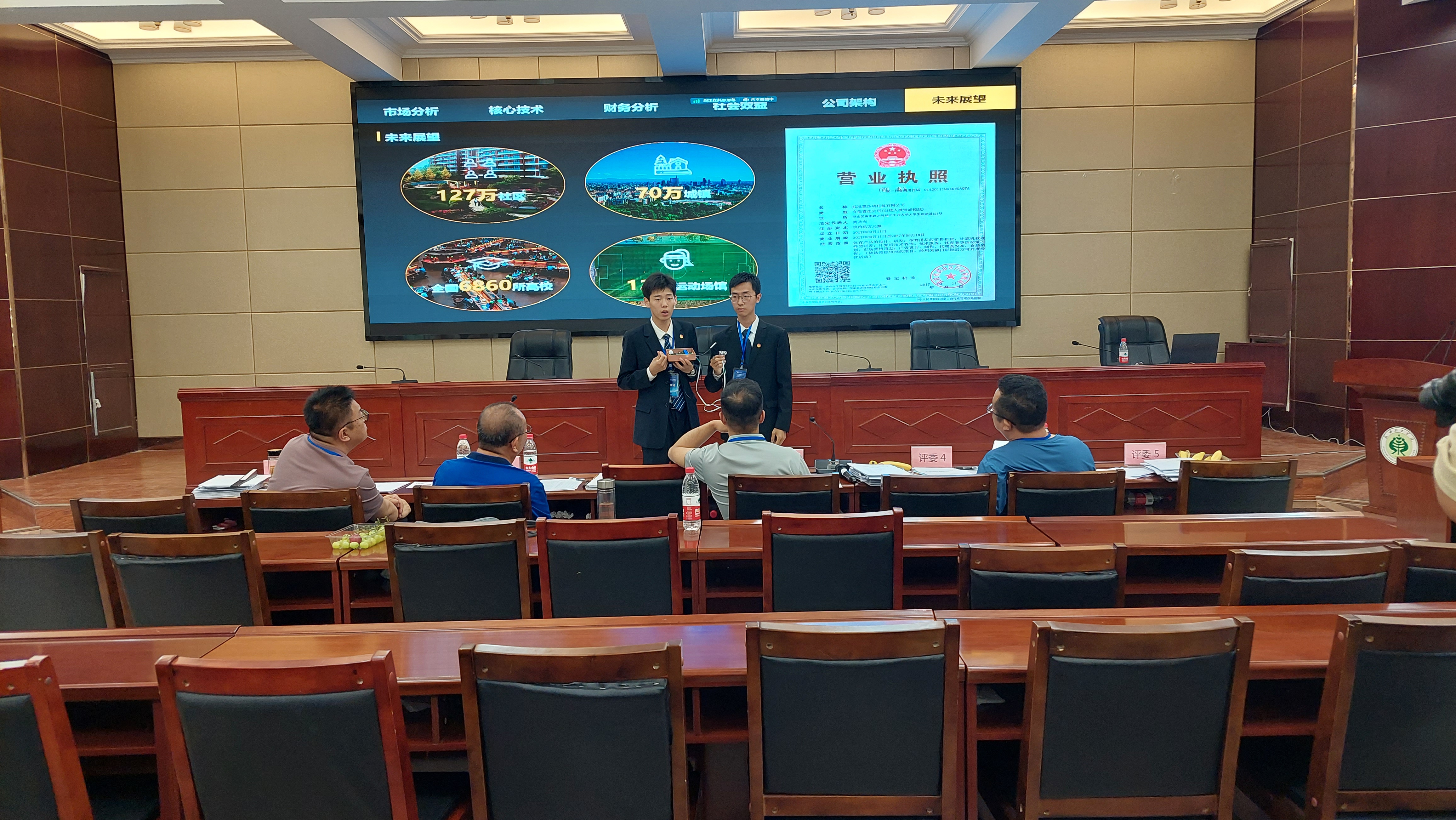 開幕式后,51支參賽團隊分別在行樹樓報告廳和創(chuàng)新創(chuàng)業(yè)中心展廳進行了路演答辯。項目路演過程中,各組選手借助PPT從項目背景、解決方案、商業(yè)模式、運營情況、團隊介紹等方面介紹參賽項目,充分展示了大學生創(chuàng)新創(chuàng)業(yè)的卓越風采。在現(xiàn)場答辯環(huán)節(jié)中,評委老師們結(jié)合選手PPT講解與項目策劃書等進行提問并提出指導(dǎo)性意見。經(jīng)過評委們的提問和指導(dǎo),參賽選手對自己的項目有了更深層次的理解。