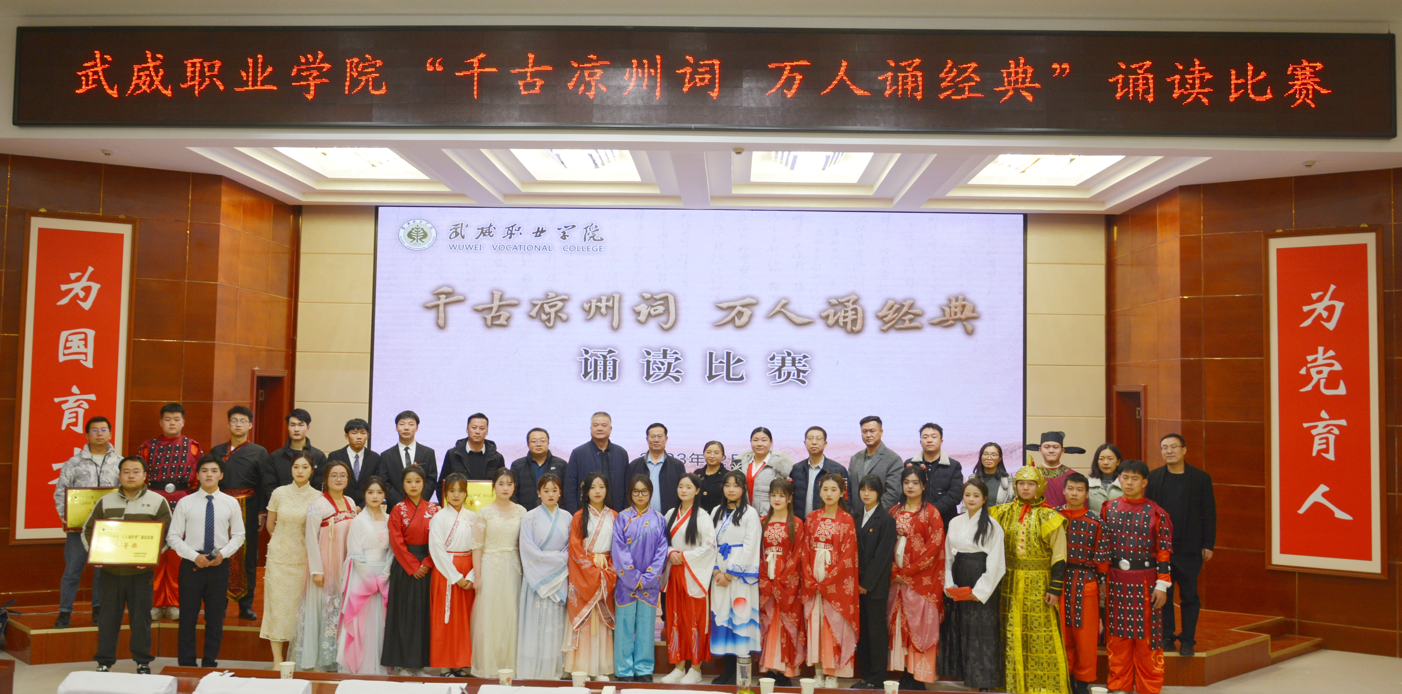 學校堅持“以文育人、以文化人”,圍繞“傳承涼州文脈,賦能文化自信”主題,以中華優(yōu)秀傳統(tǒng)文化為底蘊基石,以涼州文化為重要依托,打造出一系列根植地域文化的校園特色文化品牌活動,多舉措豐富文化育人內涵,推動文化育人提質增效,激勵武職學子凝心聚力續(xù)寫涼州豪放詞,篤定前行再譜武職新華章,全力為學校申辦武威職業(yè)技術大學貢獻青春力量!