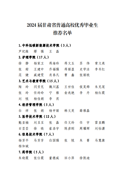 關(guān)于2024屆甘肅省普通高校優(yōu)秀畢業(yè)生候選人的公示