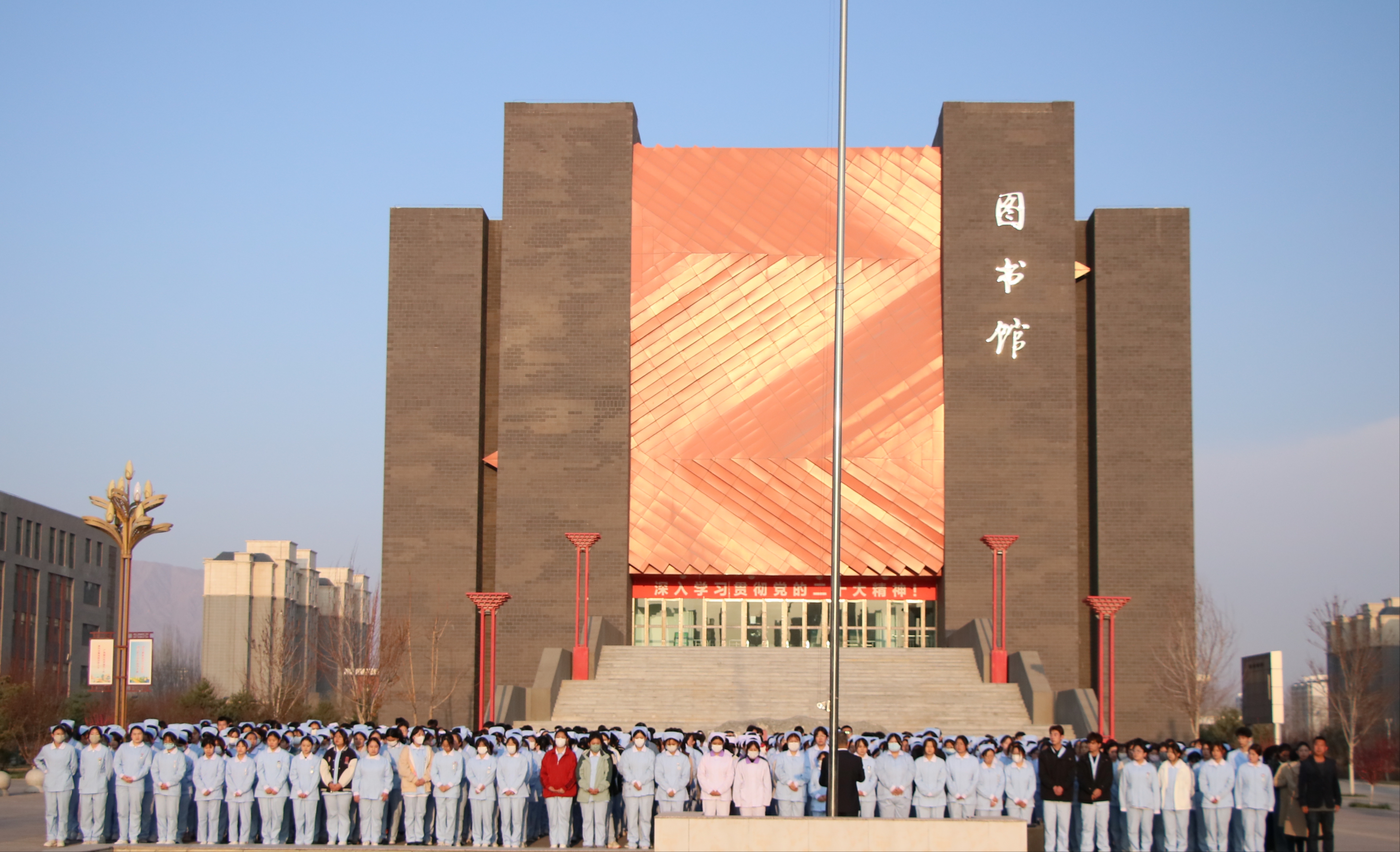4月7日清晨,武威職業(yè)學院護理學院在圖書館前廣場舉行升國旗儀式,學院黨總支書記張建輝、團委書記楊杰、全體班主任及2022、2023級全體學生參加此次升旗儀式,儀式由楊杰主持。