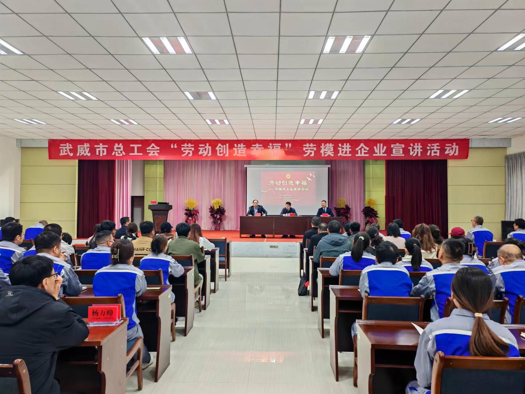 為弘揚新時代的勞模精神、勞動精神、工匠精神,進(jìn)一步營造勞動最光榮、勞動最崇高、勞動最偉大、勞動最美麗的濃厚氛圍,4月30日,市總工會、學(xué)校聯(lián)合開展的“勞動創(chuàng)造幸?!眲谀_M(jìn)企業(yè)宣講活動走進(jìn)青島啤酒武威有限責(zé)任公司,青島啤酒武威有限責(zé)任公司職工代表、學(xué)校勞模工匠技術(shù)服務(wù)團(tuán)隊120多人參加活動。