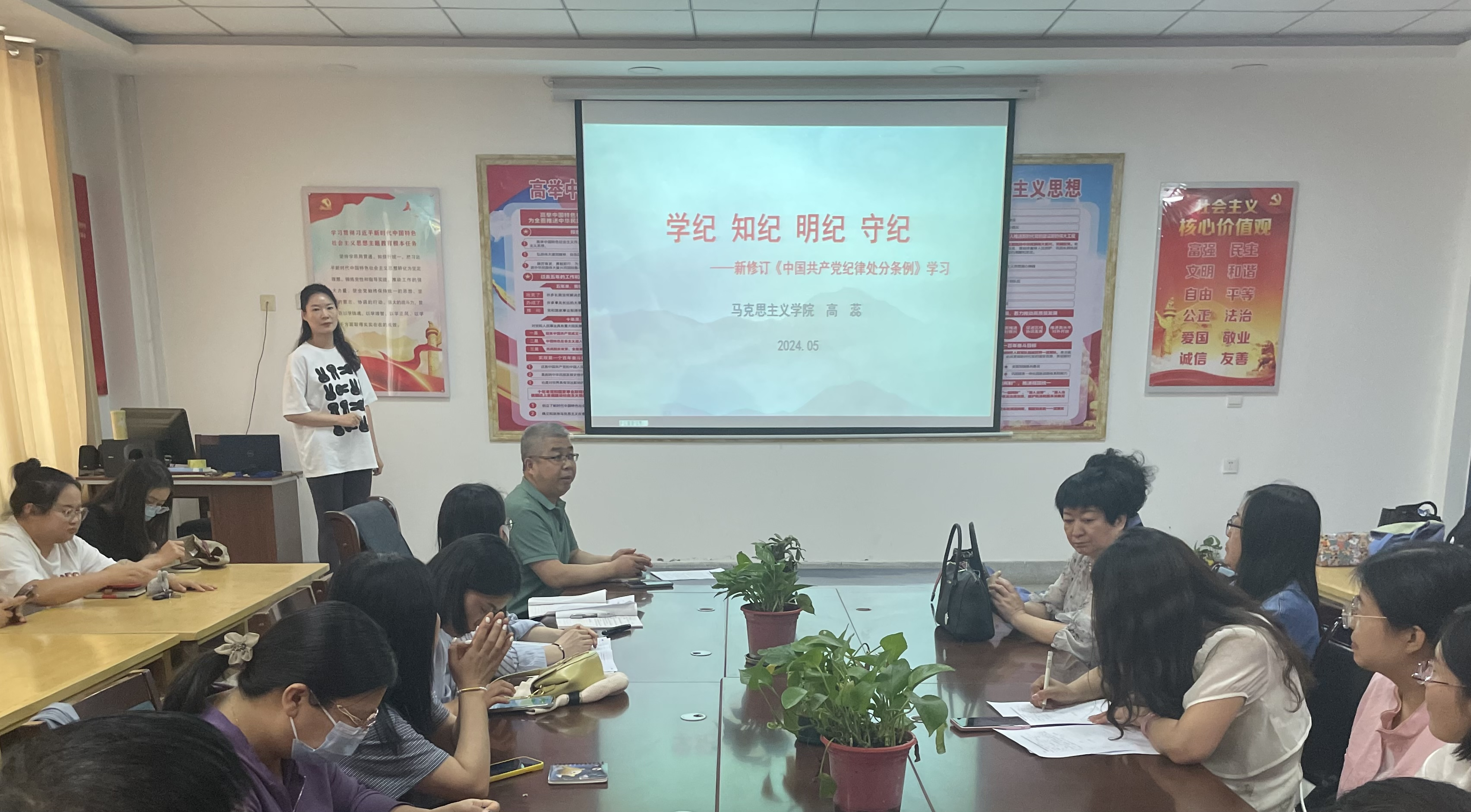 為扎實推動護理學院黨紀學習教育走深走實,進一步嚴明政治紀律和政治規(guī)矩,5月17日,學院邀請學校宣講組成員、馬克思主義學院副教授高蕊對《中國共產(chǎn)黨紀律處分條例》(以下簡稱《條例》)進行專題宣講解讀,學院黨總支書記張建輝主持宣講活動,全體黨員干部參加。