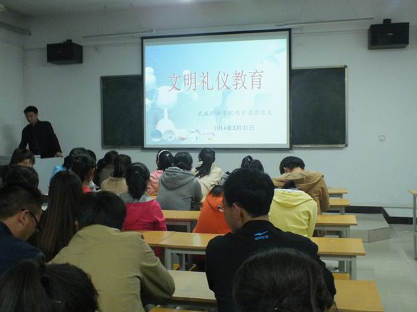 3月31日晚,在藥學(xué)系黨總支的指導(dǎo)下,藥學(xué)系團(tuán)總支組織各班共青團(tuán)員共計(jì)80余人在2號(hào)教學(xué)樓614教室開展了文明禮儀教育活動(dòng)。