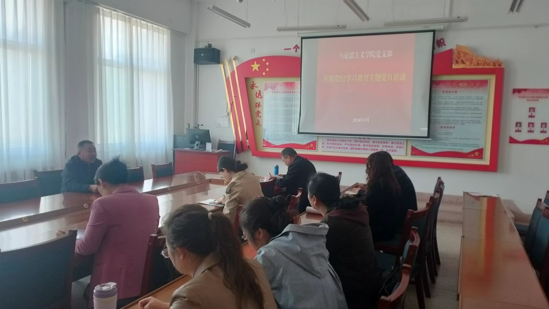 5月10日,馬克思主義學(xué)院黨支部召開黨紀(jì)學(xué)習(xí)教育專題學(xué)習(xí)會,馬克思主義學(xué)院黨支部書記劉心主持,全體黨員參加會議。
