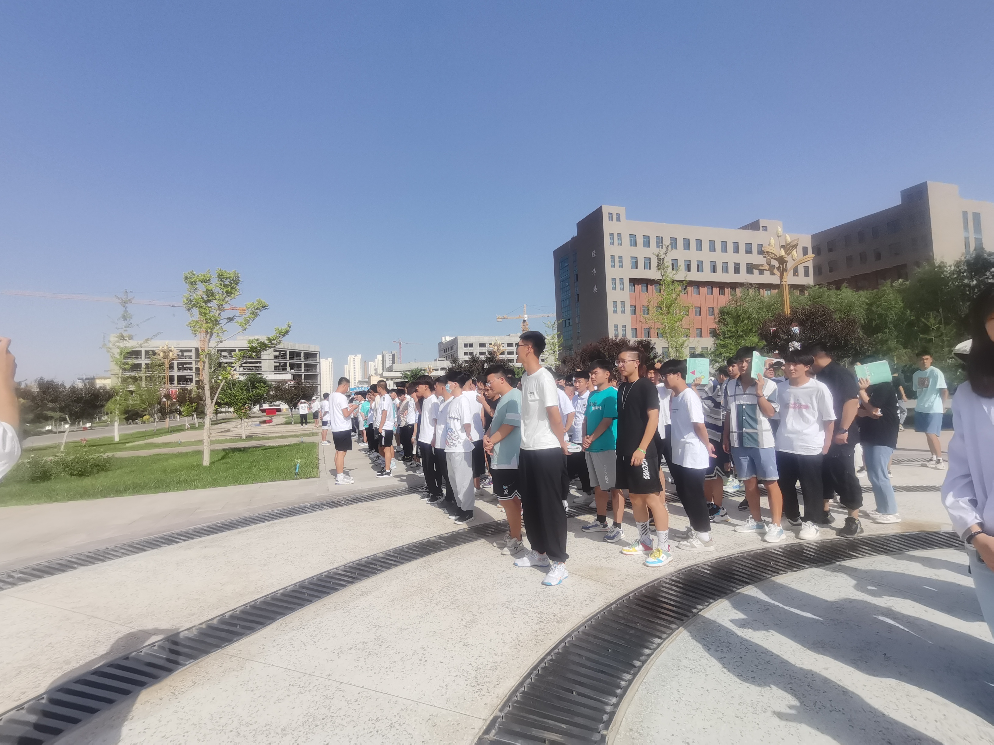 6月24日下午4點46分,學校應急疏散演練正式開始。隨著消防警報響起,上課教師立即停止上課組織學生疏散,學生用毛巾捂住口鼻,在學工人員的指揮下,按照逃生路線迅速有序疏散。在5分鐘內(nèi),8000多名師生全部按指要求撤離到指定區(qū)域集合,演練取得圓滿成功。
