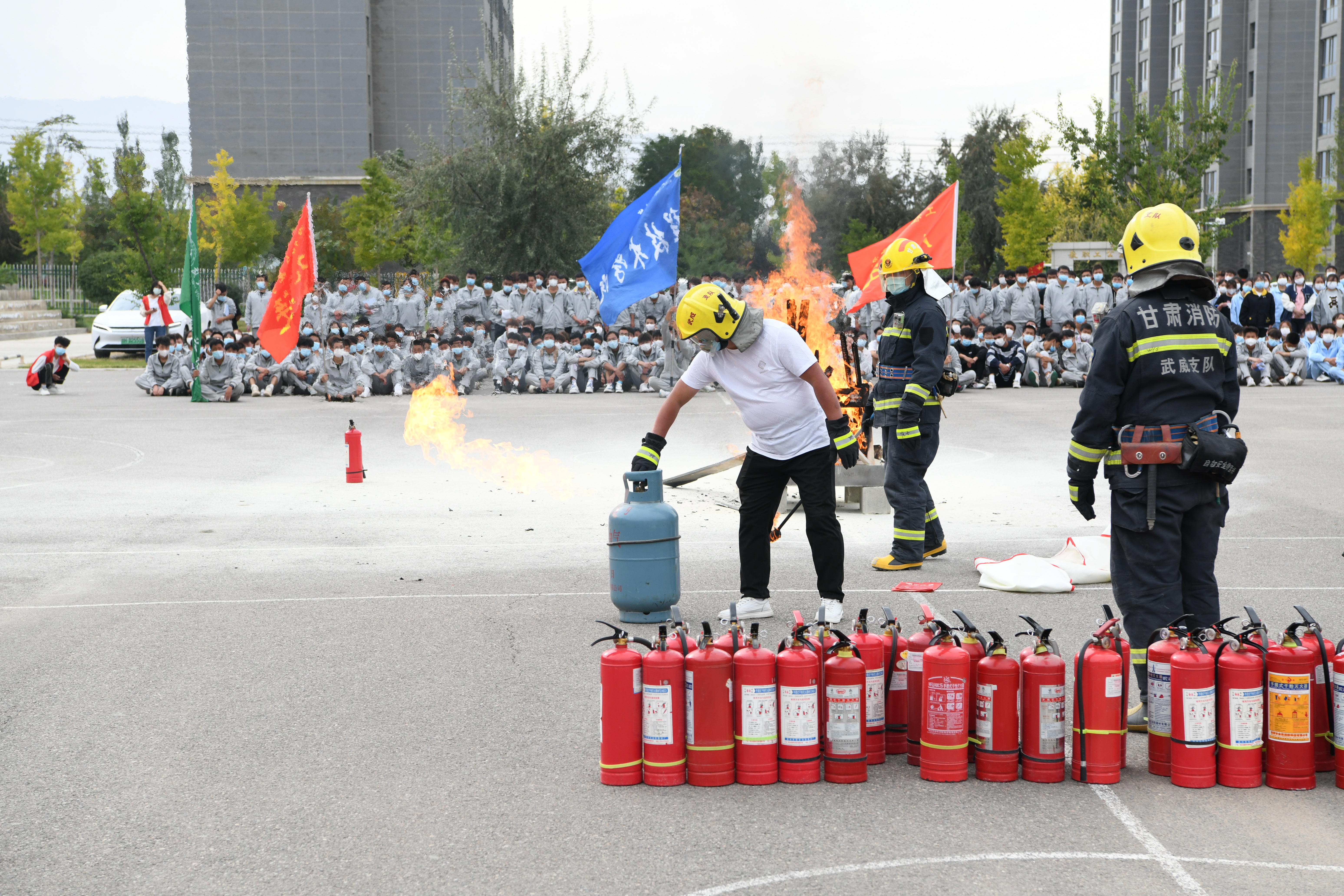 9月30日,學校聯(lián)合武威市消防救援支隊舉行了2022年秋季消防應急疏散暨滅火演練活動。學校副校長王守云、武威市消防救援支隊涼都特勤站副站長張旭出席活動,安全保衛(wèi)處、學生工作處、各二級學院負責人和輔導員、班主任現(xiàn)場觀摩演練,約4200多名2022級新生參加了演練。