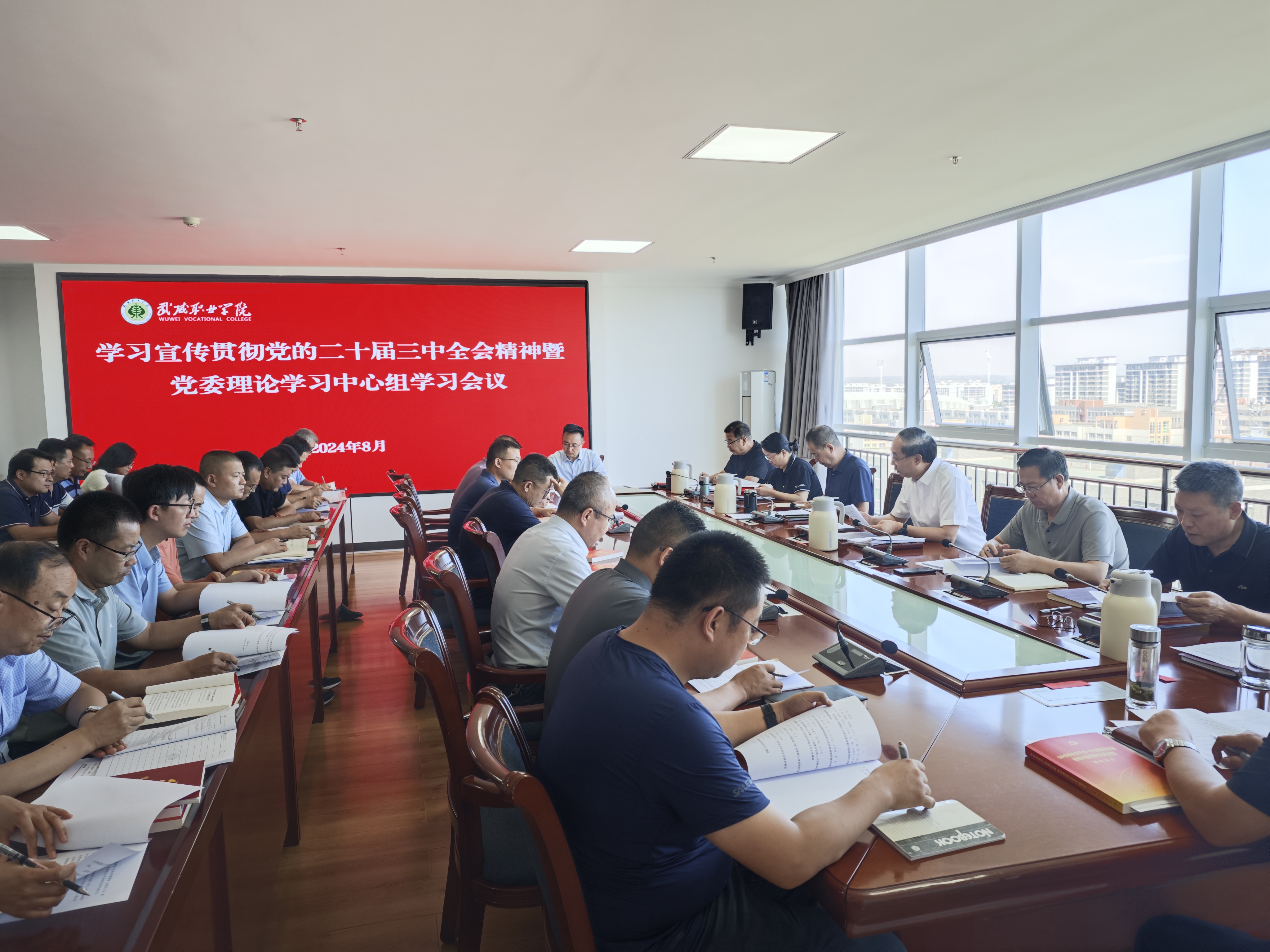8月12日上午,學校召開學習宣傳貫徹黨的二十屆三中全會精神暨黨委理論學習中心組學習會議。學校黨委領導班子成員,各部門、二級學院主要負責人,各黨總支與直屬黨支部書記參加會議。黨委書記王宏主持會議并講話。