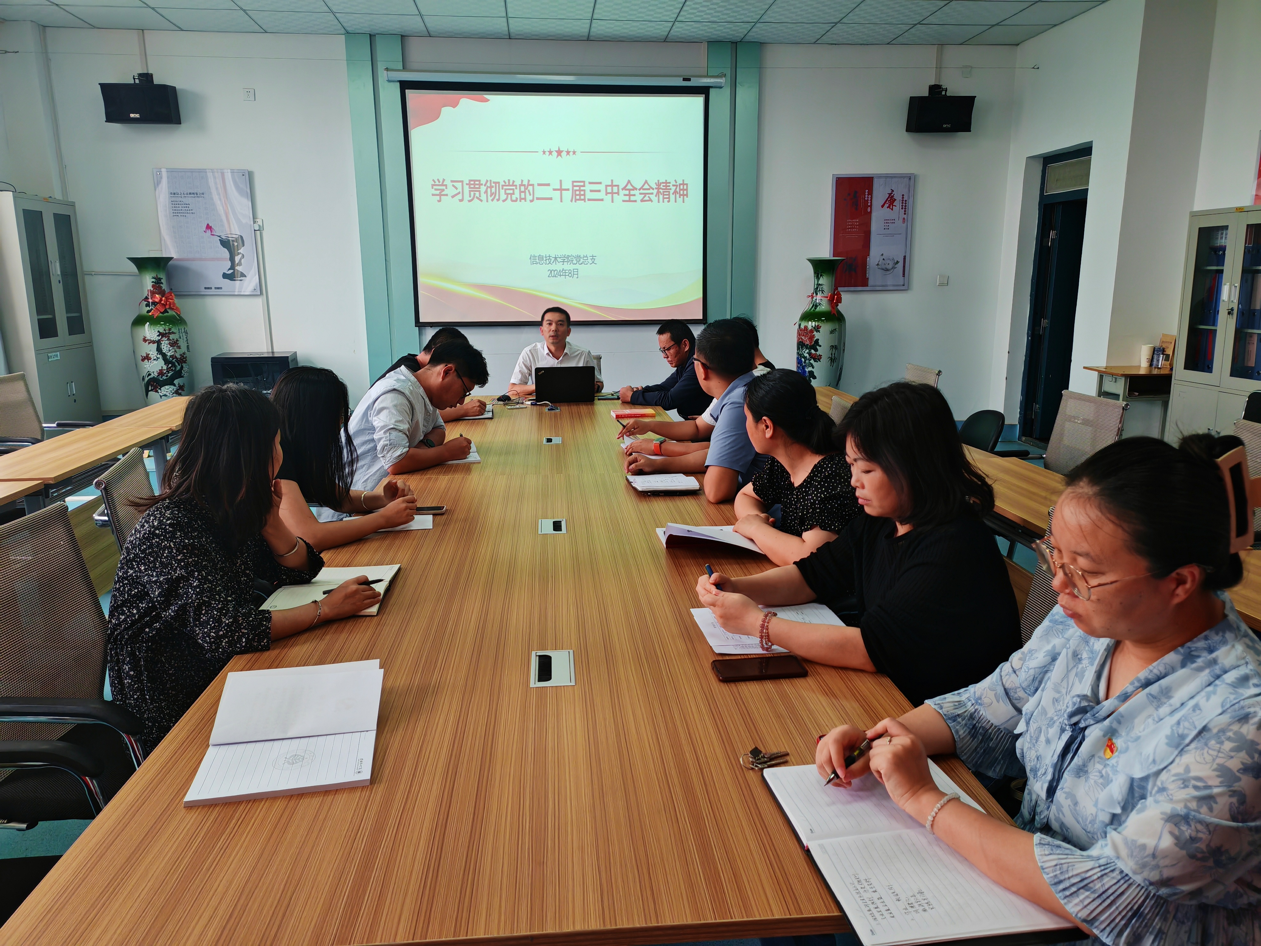 8月13日,信息技術學院召開學習黨的二十屆三中全會精神專題學習會議。學院黨總支書記史子新主持會議,全體黨員參加會議。
