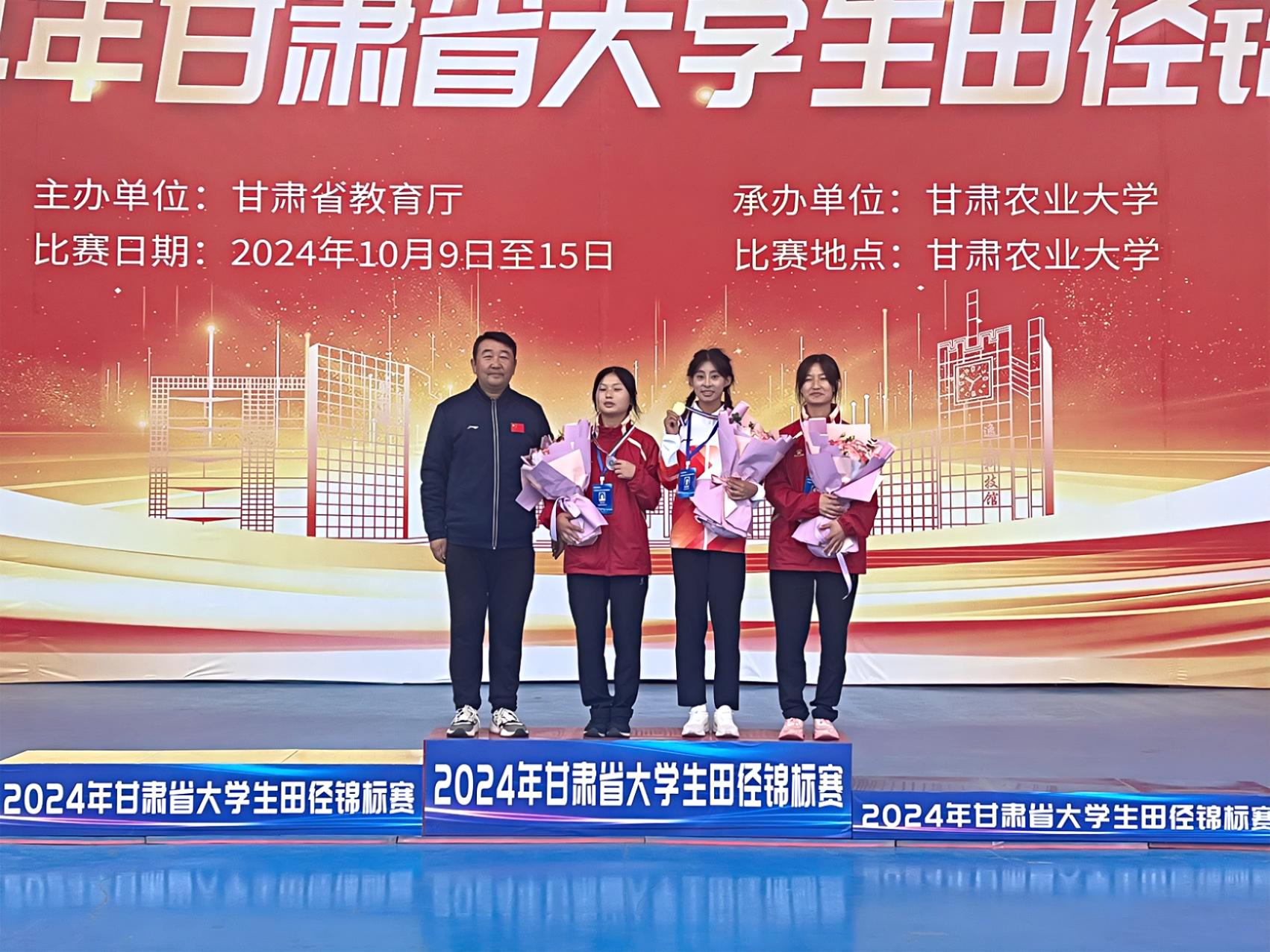 10月9日至15日,由省教育廳主辦的2024年甘肅省大學(xué)生田徑錦標(biāo)賽在甘肅農(nóng)業(yè)大學(xué)舉行。我校運(yùn)動(dòng)健兒在比賽中獲得3金、1銀的好成績,13個(gè)賽項(xiàng)進(jìn)入決賽取得名次,2位教練員獲得“優(yōu)秀教練員”,學(xué)校榮獲“體育道德風(fēng)尚獎(jiǎng)”,為我校贏得了榮譽(yù)。