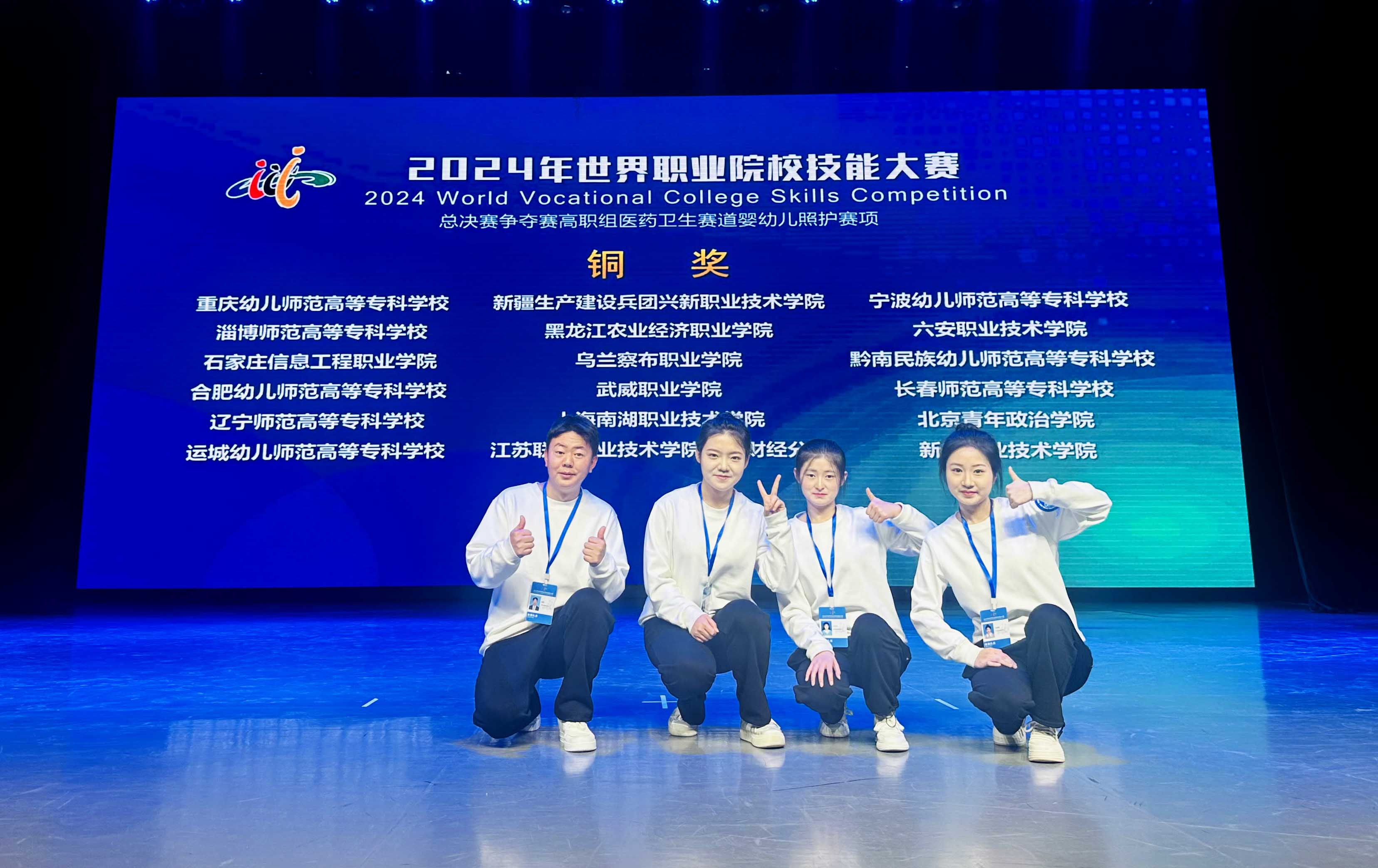 10月26日—10月30日,2024年世界職業(yè)院校技能大賽總決賽爭奪賽高職組醫(yī)藥衛(wèi)生賽道“嬰幼兒照護賽項”在蘭州職業(yè)技術學院舉行。來自全國30個省、市、自治區(qū)的60支參賽隊伍,共213名選手同臺競技。經過2天激烈角逐,由學院賈懷玲、郭濤、王巧云、劉麗霞四位同學組成的參賽團隊獲得銅獎。
