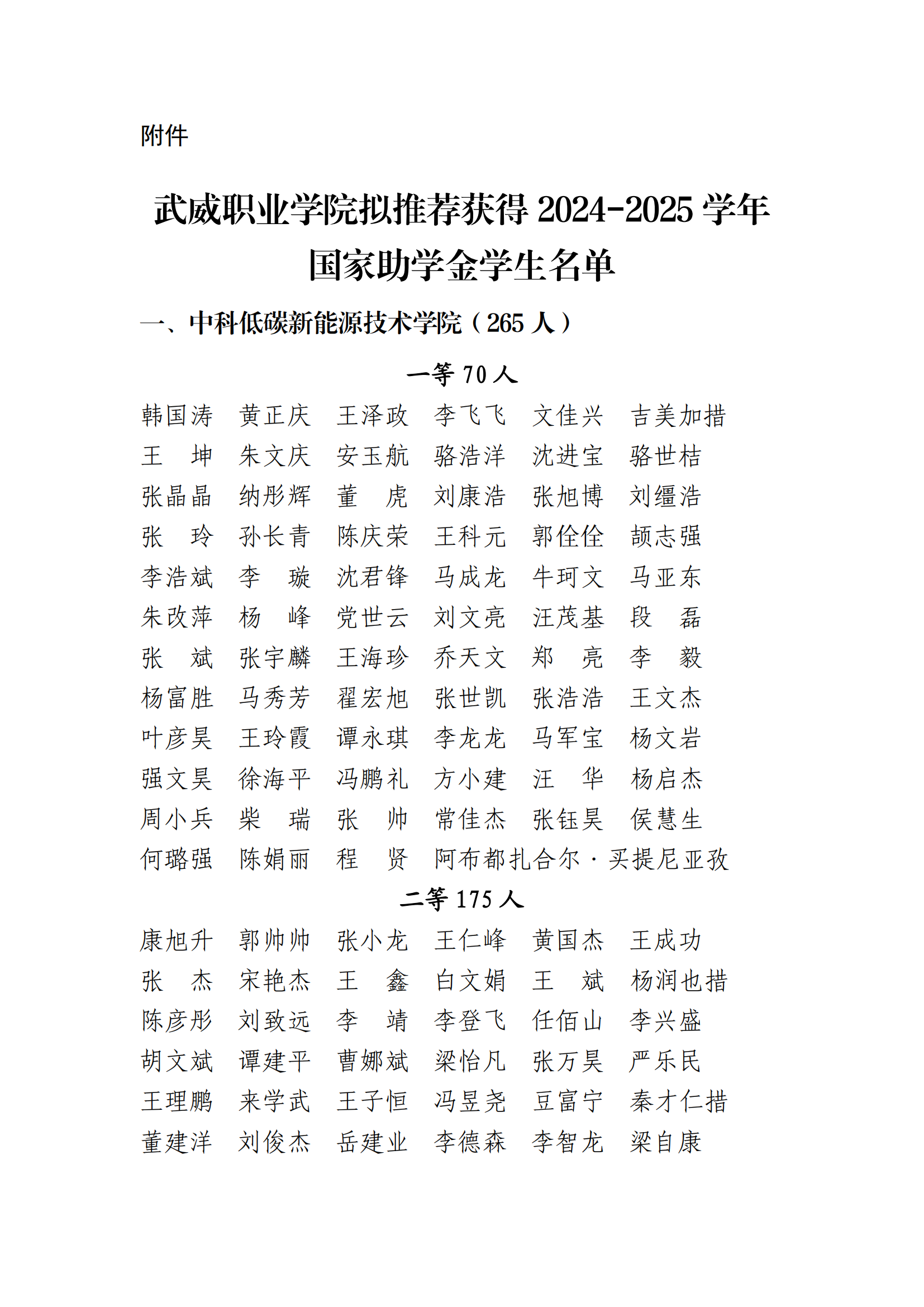 武威職業(yè)學院關(guān)于2024-2025學年國家助學金評選結(jié)果的公示
