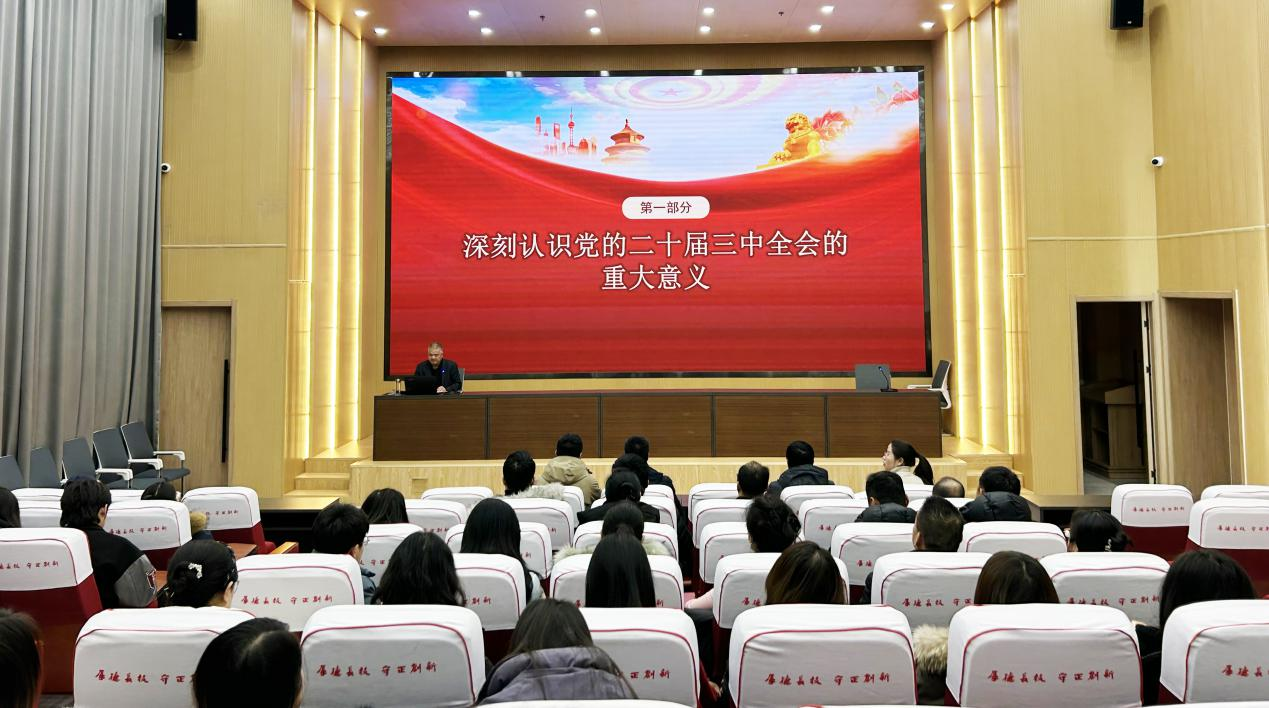 1月3日下午,黨委委員、副校長王守云在能源科技樓學(xué)術(shù)報告廳為藝術(shù)與教育學(xué)院、經(jīng)濟管理學(xué)院師生帶來了一場生動而有深度的專題黨課報告會,深入解讀黨的二十屆三中全會精神和習(xí)近平總書記視察甘肅重要講話重要指示精神。兩學(xué)院黨員、預(yù)備黨員、入黨積極分子、師生代表共100余人參加。