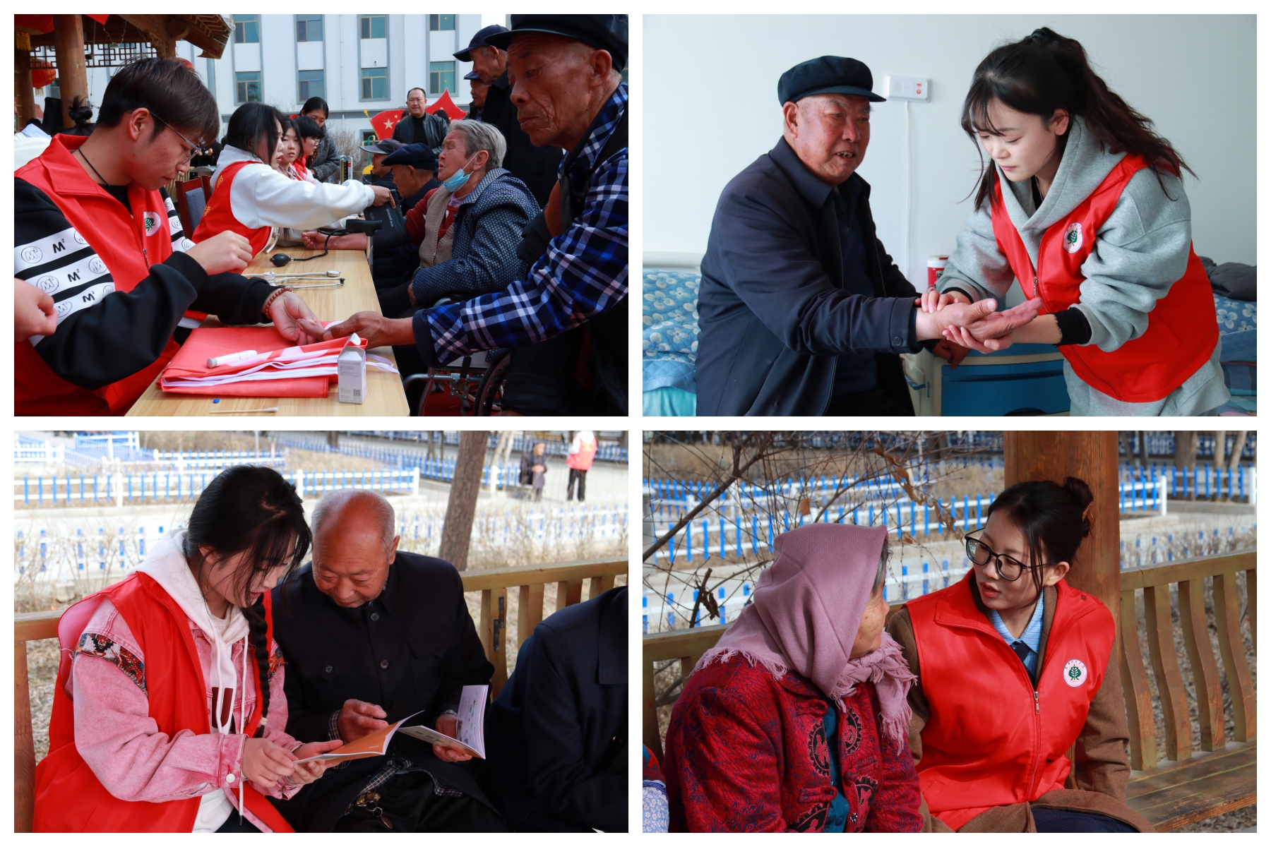 在健康慰問環(huán)節(jié),護(hù)理學(xué)院志愿者結(jié)合專業(yè)特色,分組為老人測量血壓、血糖,并耐心給老人講解養(yǎng)生知識(shí),告知在日常生活起居中的注意事項(xiàng),以專業(yè)技能守護(hù)老人健康。