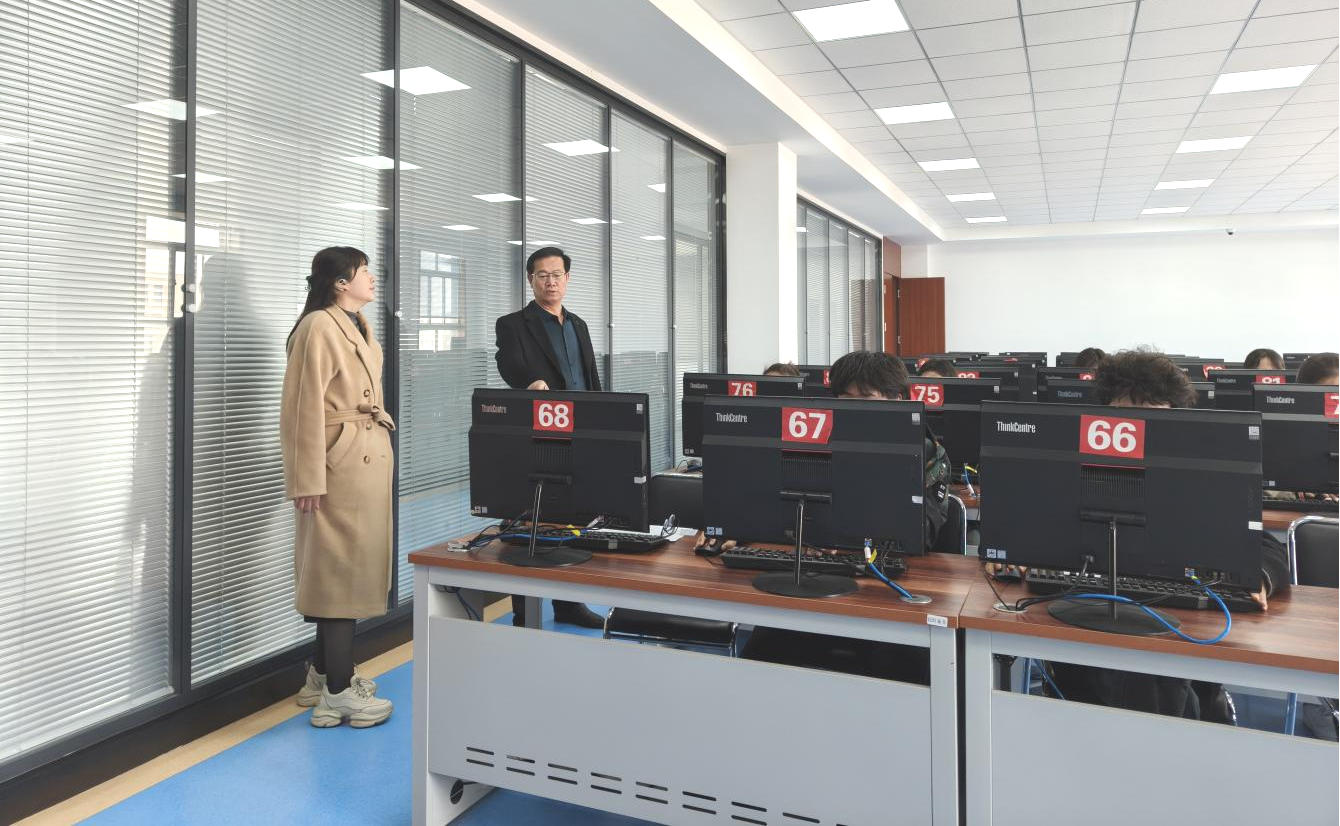考試期間,考生有序通過人臉識別、智能安檢等信息化核驗系統(tǒng)入場,監(jiān)考團隊嚴格執(zhí)行標(biāo)準化監(jiān)考流程。學(xué)校黨委副書記、副校長張開禮,黨委委員、紀委書記陳曉煜帶隊開展巡考督導(dǎo),檢查考場環(huán)境、監(jiān)考規(guī)范及應(yīng)急預(yù)案落實情況,對考務(wù)組織的專業(yè)性給予充分肯定,并就優(yōu)化考場服務(wù)、提升考生體驗提出指導(dǎo)性意見。