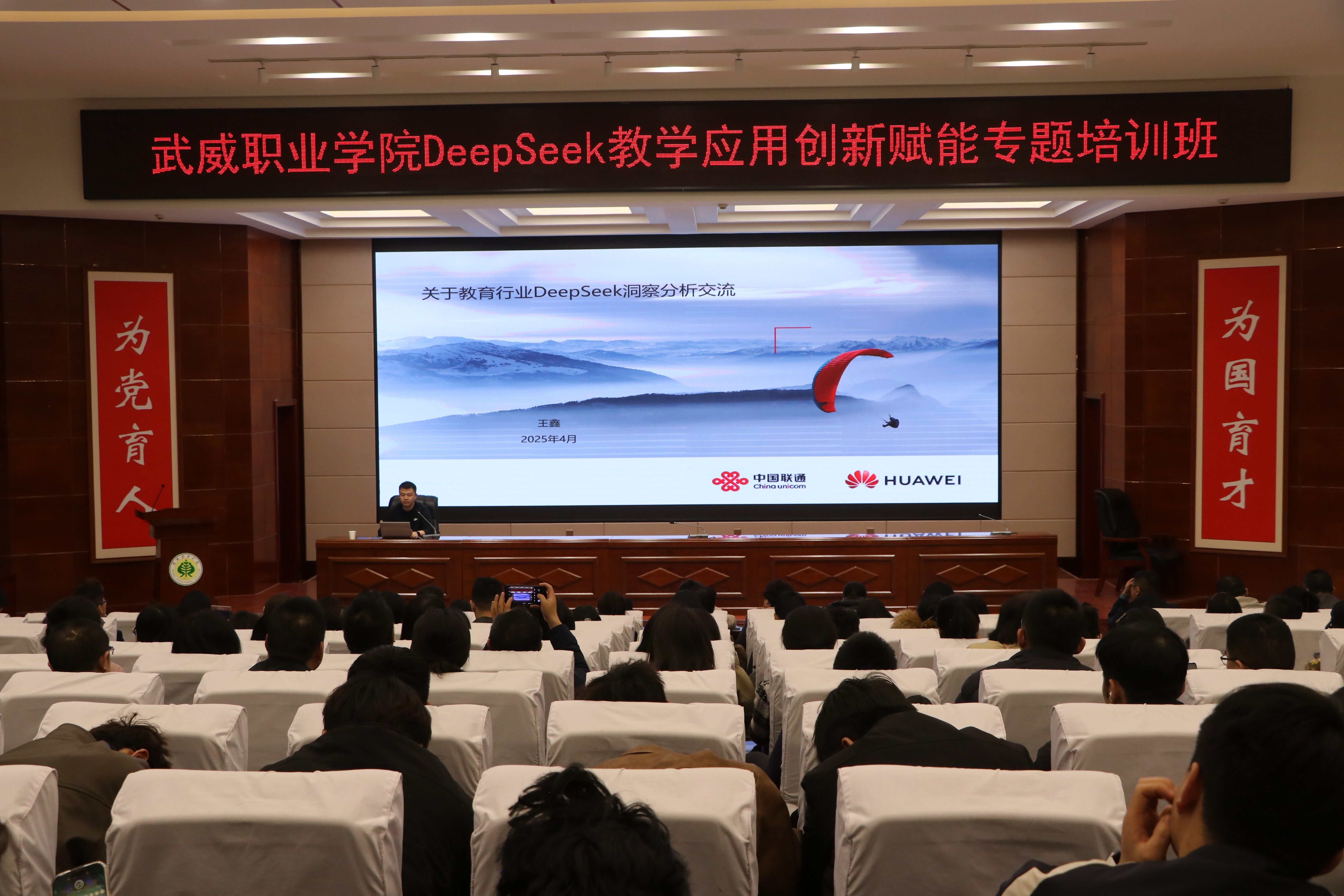 為深入探討DeepSeek技術(shù)的應(yīng)用,助力學(xué)校師生運用AI工具進(jìn)行教學(xué)實踐、智慧課程建設(shè)與科學(xué)研究工作,為教學(xué)改革與教學(xué)創(chuàng)新實踐筑基賦能。4月3日,學(xué)校邀請聯(lián)通數(shù)據(jù)智能有限公司教育行業(yè)解決方案專家包紅梅和華為技術(shù)有限公司智算產(chǎn)業(yè)AI架構(gòu)師王鑫,舉辦了“DeepSeek教學(xué)應(yīng)用創(chuàng)新賦能”專題講座。講座由網(wǎng)絡(luò)安全與信息技術(shù)中心負(fù)責(zé)人史子新主持,學(xué)校各部門、二級學(xué)院教師代表,信息技術(shù)學(xué)院學(xué)生代表共計220人參加。