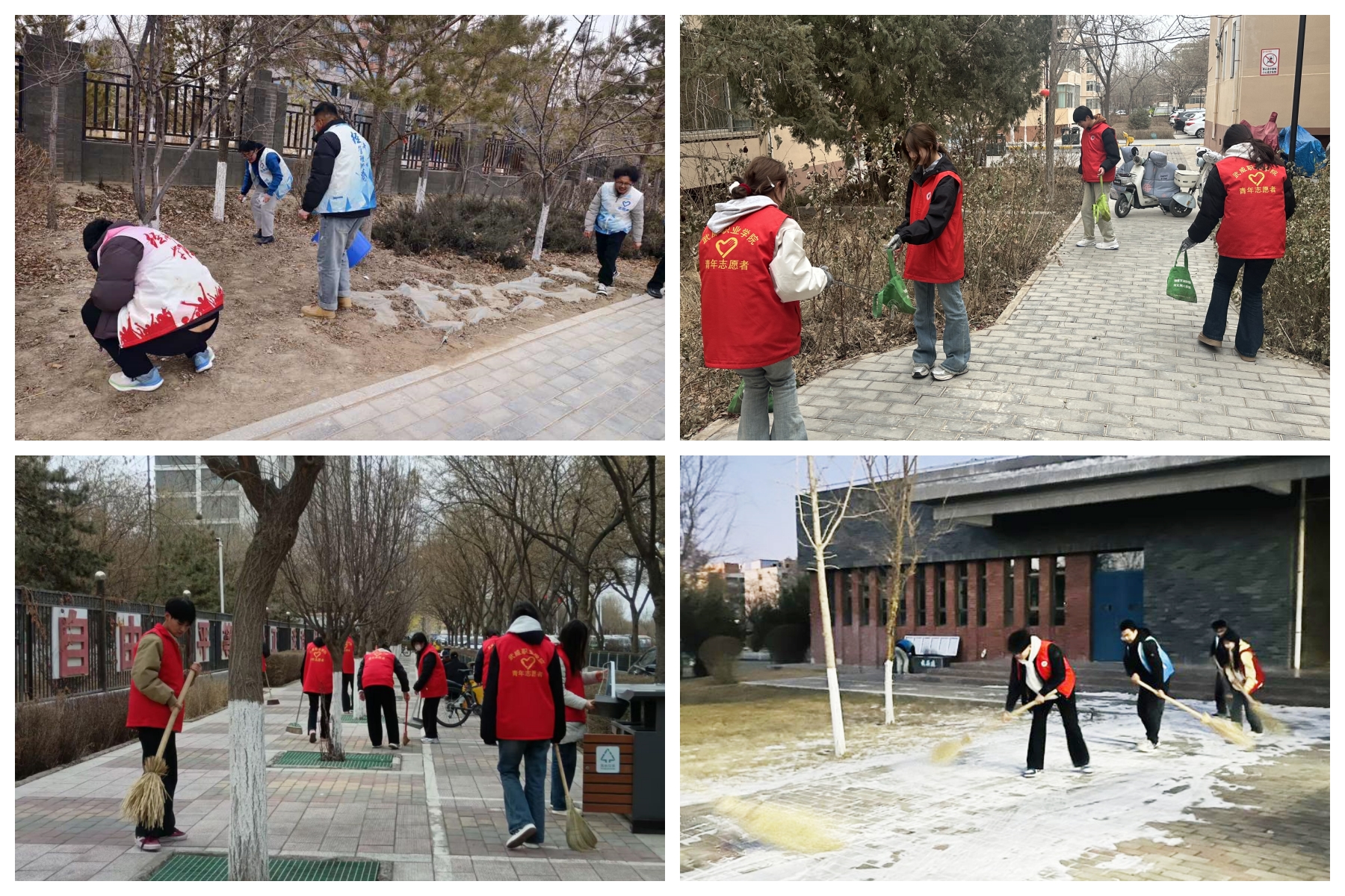 開展美麗校園志愿服務(wù)活動。3月5日,校團(tuán)委組織開展“學(xué)雷鋒日”集中活動,各二級學(xué)院320余名志愿者在學(xué)校東門及北門外周邊區(qū)域開展衛(wèi)生清掃,清掃人行道枯葉、擦洗公交站臺、清理綠化帶雜物、擺放共享單車、撿拾地面煙頭、擦洗垃圾箱、條凳及綠化帶隔離欄。
