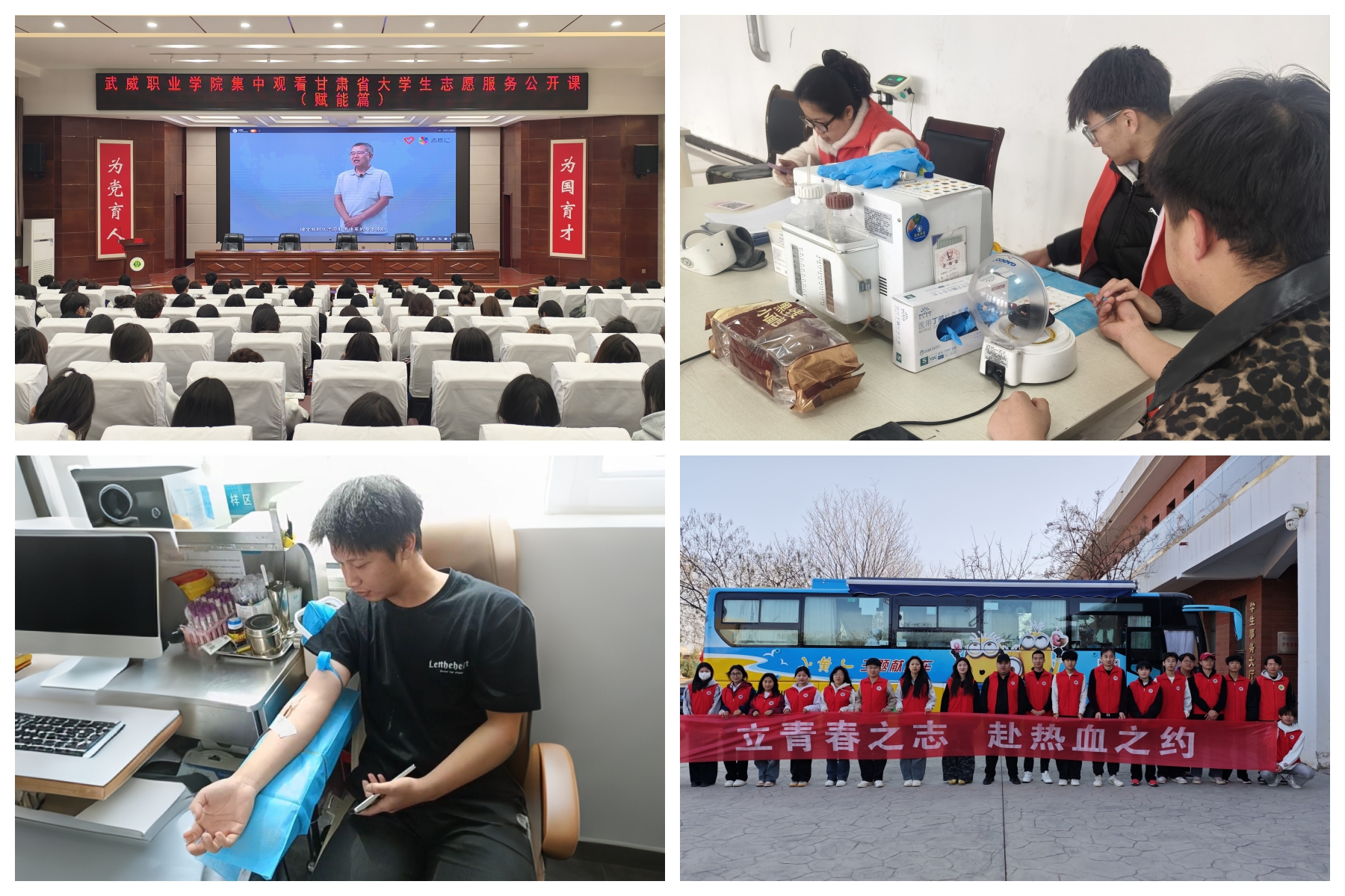 開展無償獻血活動。3月24日,校團委邀請市中心血站工作人員在學校開展“愛心無界 獻血有愛”無償獻血知識講座,220名有獻血意向的同學聆聽講座。3月26日-28日,校團委聯(lián)系市中心血站在學校開展“立青春之志 赴熱血之約”無償獻血活動,100名志愿者累計捐獻熱血20700ml,為學校無償獻血事業(yè)做出突出貢獻,為健康中國目標貢獻青春力量。