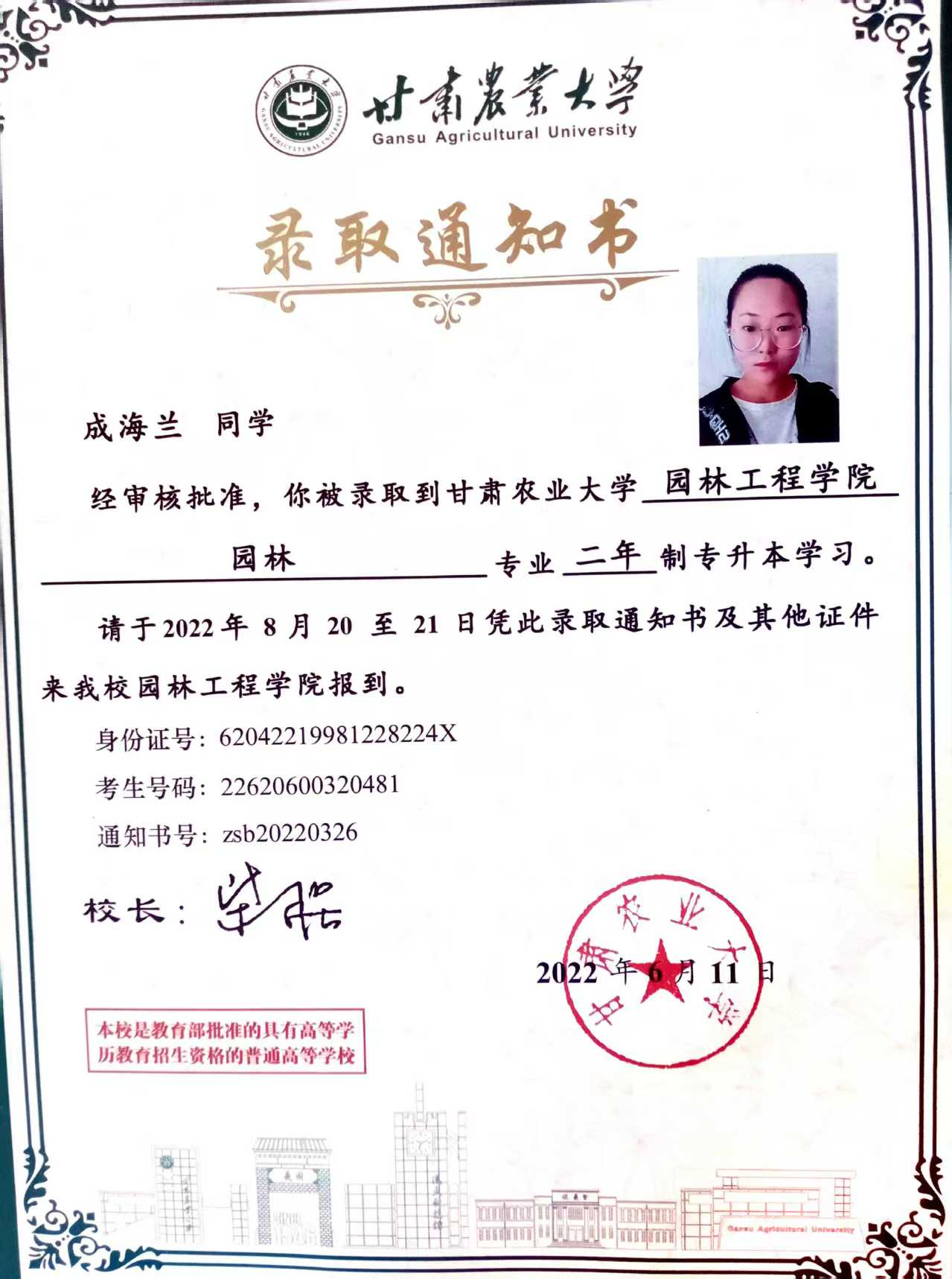 2022.09-2024.06,就讀于甘肅農(nóng)業(yè)大學(xué)園林工程學(xué)院園林本科專業(yè)