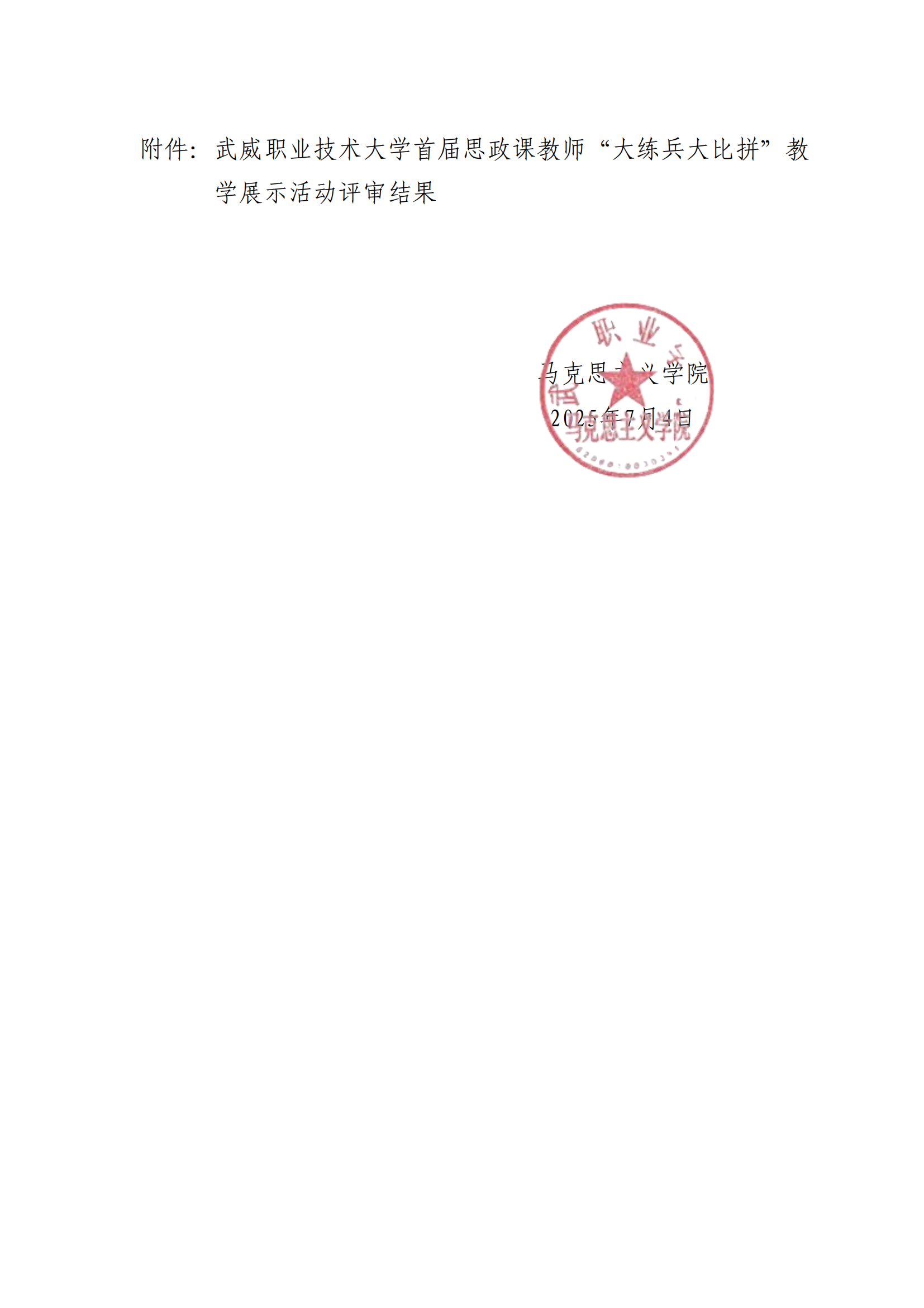 武威職業(yè)技術(shù)大學首屆思政課教師“大練兵大比拼”教學展示活動評審結(jié)果的公示