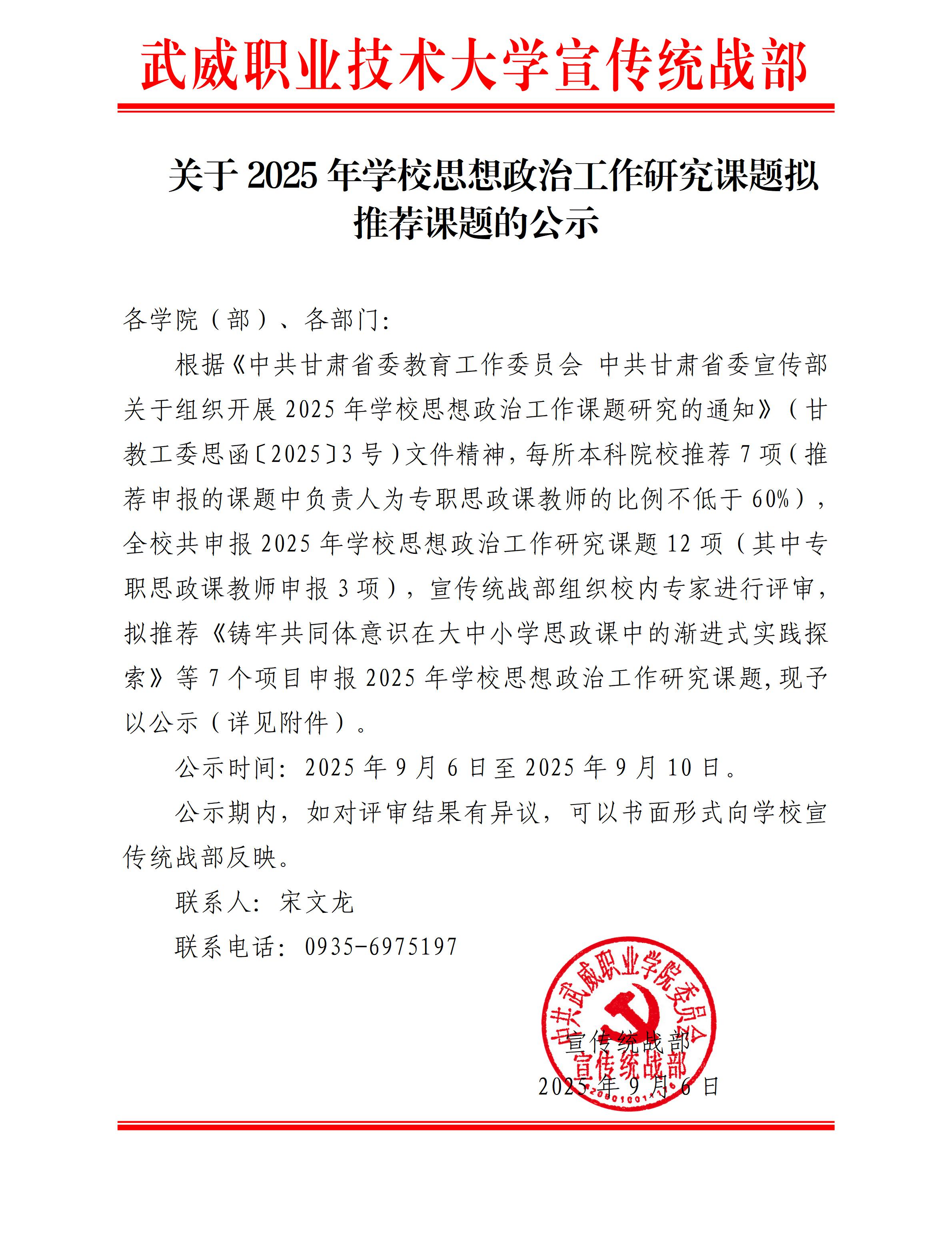 關(guān)于2025年學校思想政治工作研究課題擬推薦課題的公示