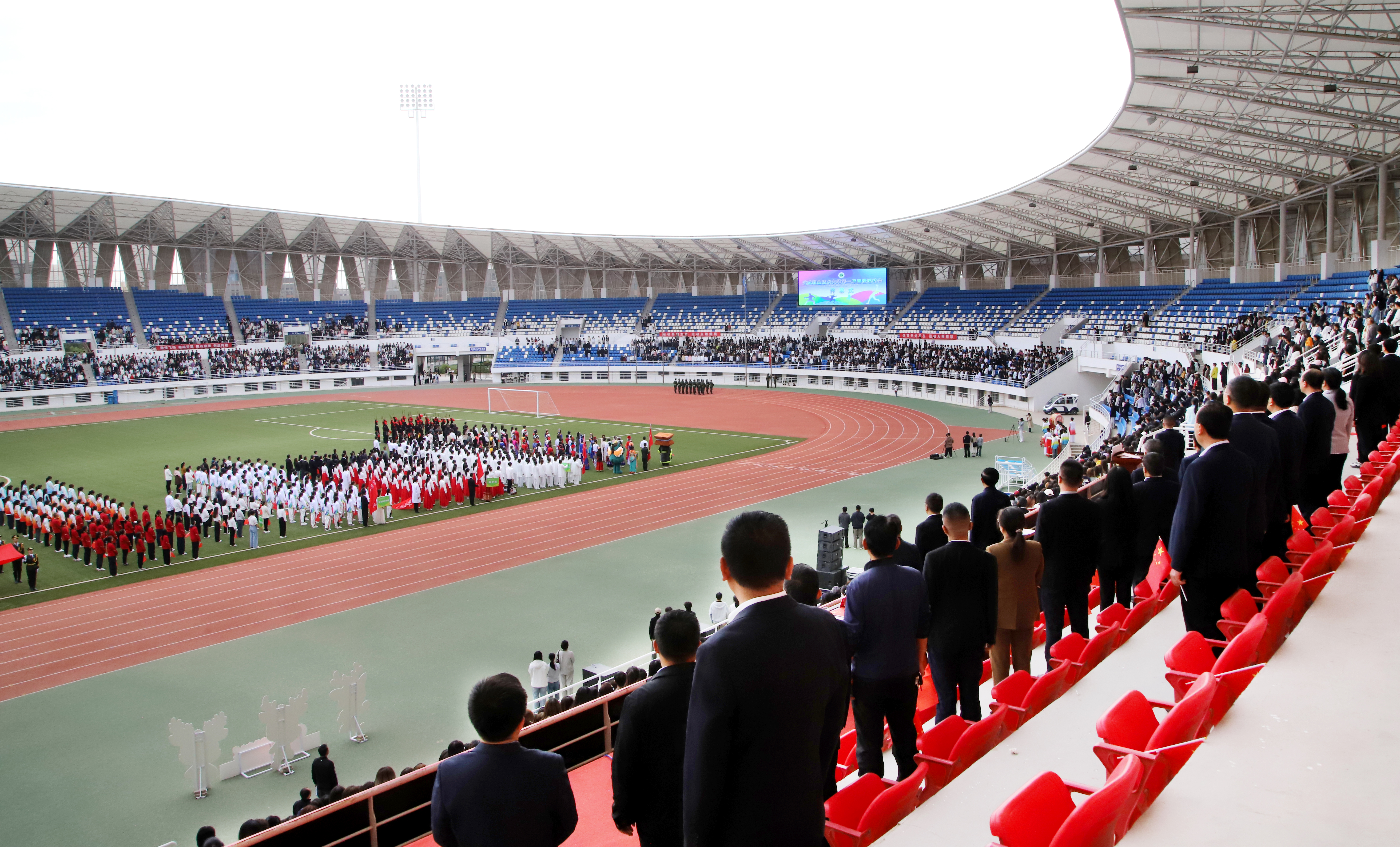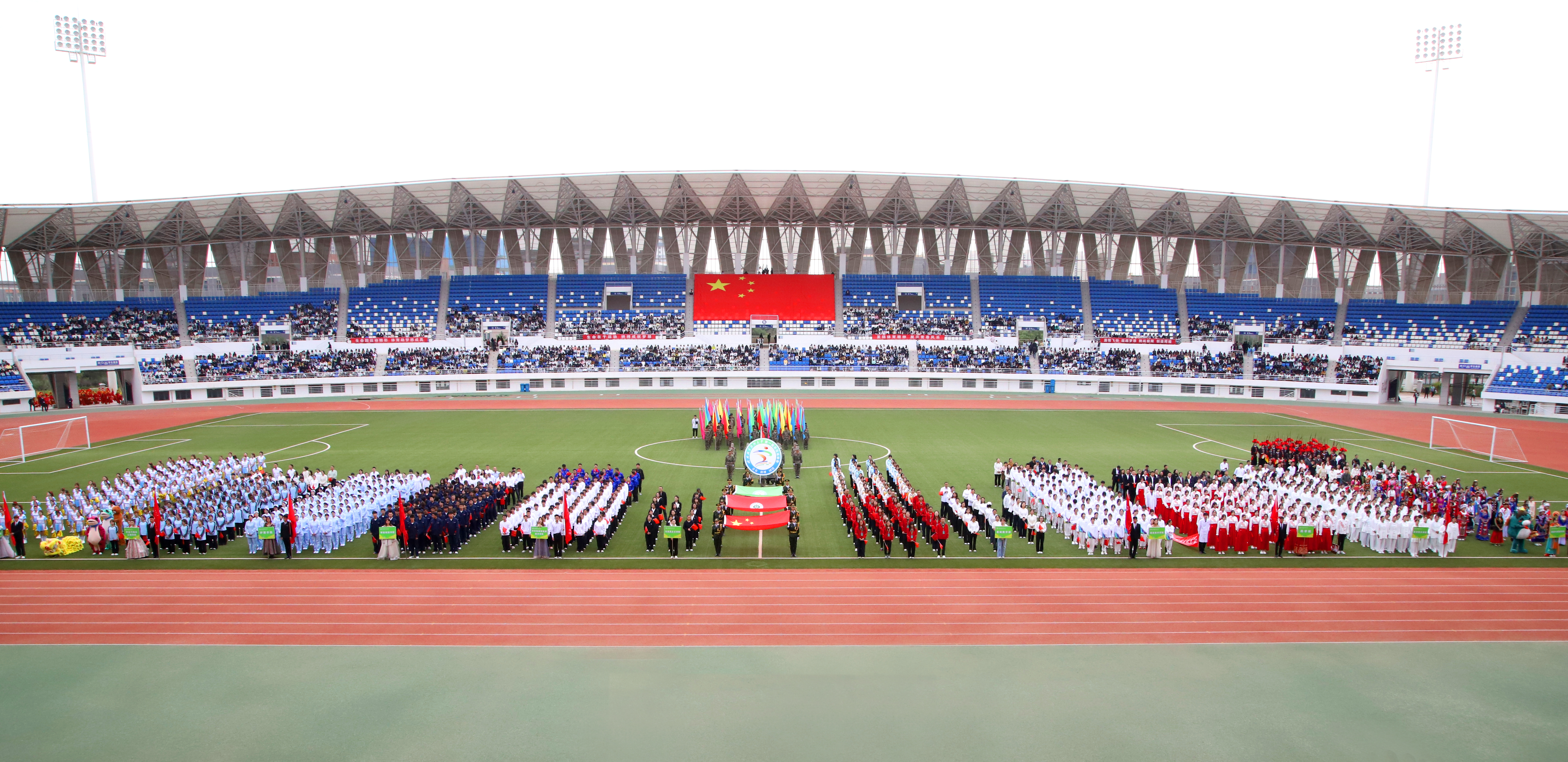 開幕式最后,萬名師生高唱《歌唱祖國》,以歌聲獻(xiàn)禮祖國76華誕,為運(yùn)動(dòng)會(huì)開幕式畫上了圓滿的句號(hào)。