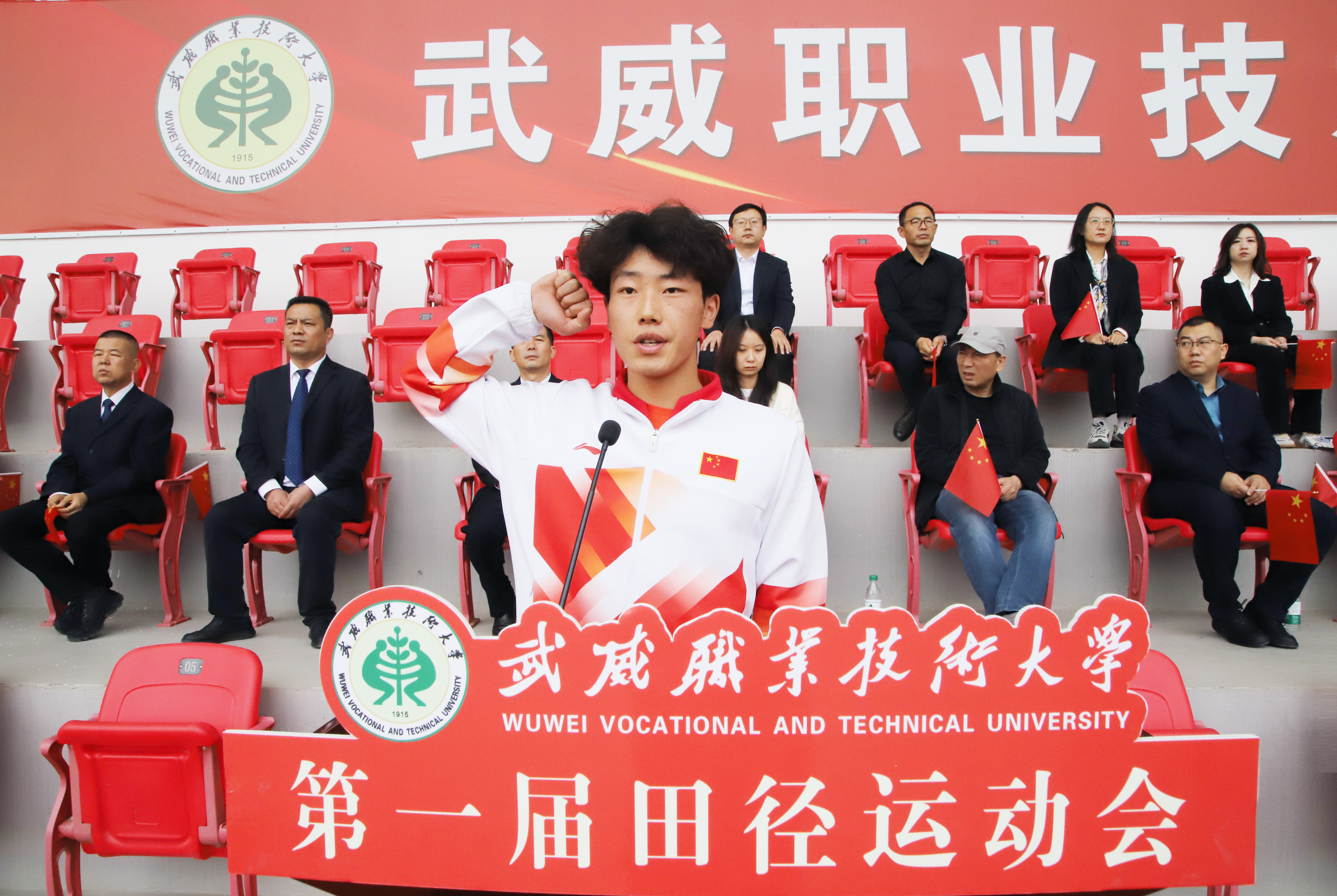 王宏宣布武威職業(yè)技術(shù)大學(xué)第一屆田徑運(yùn)動(dòng)會(huì)開幕。