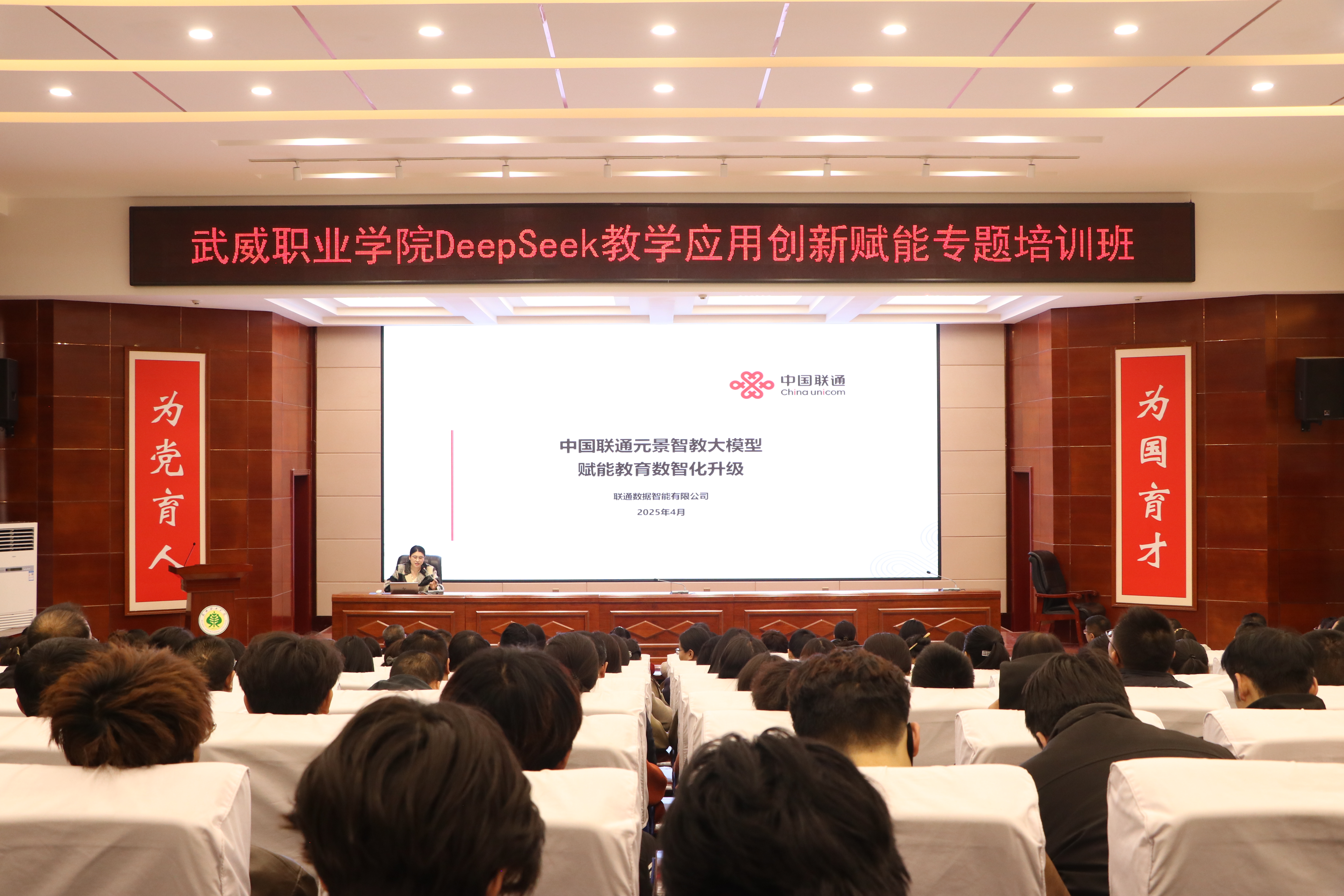 為深入探討DeepSeek技術(shù)的應(yīng)用,助力學校師生運用AI工具進行教學實踐、智慧課程建設(shè)與科學研究工作,為教學改革與教學創(chuàng)新實踐筑基賦能。4月3日,學校邀請聯(lián)通數(shù)據(jù)智能有限公司教育行業(yè)解決方案專家包紅梅和華為技術(shù)有限公司智算產(chǎn)業(yè)AI架構(gòu)師王鑫,舉辦了“DeepSeek教學應(yīng)用創(chuàng)新賦能”專題講座。講座由網(wǎng)絡(luò)安全與信息技術(shù)中心負責人史子新主持,學校各部門、二級學院教師代表,信息技術(shù)學院學生代表共計220人參加。