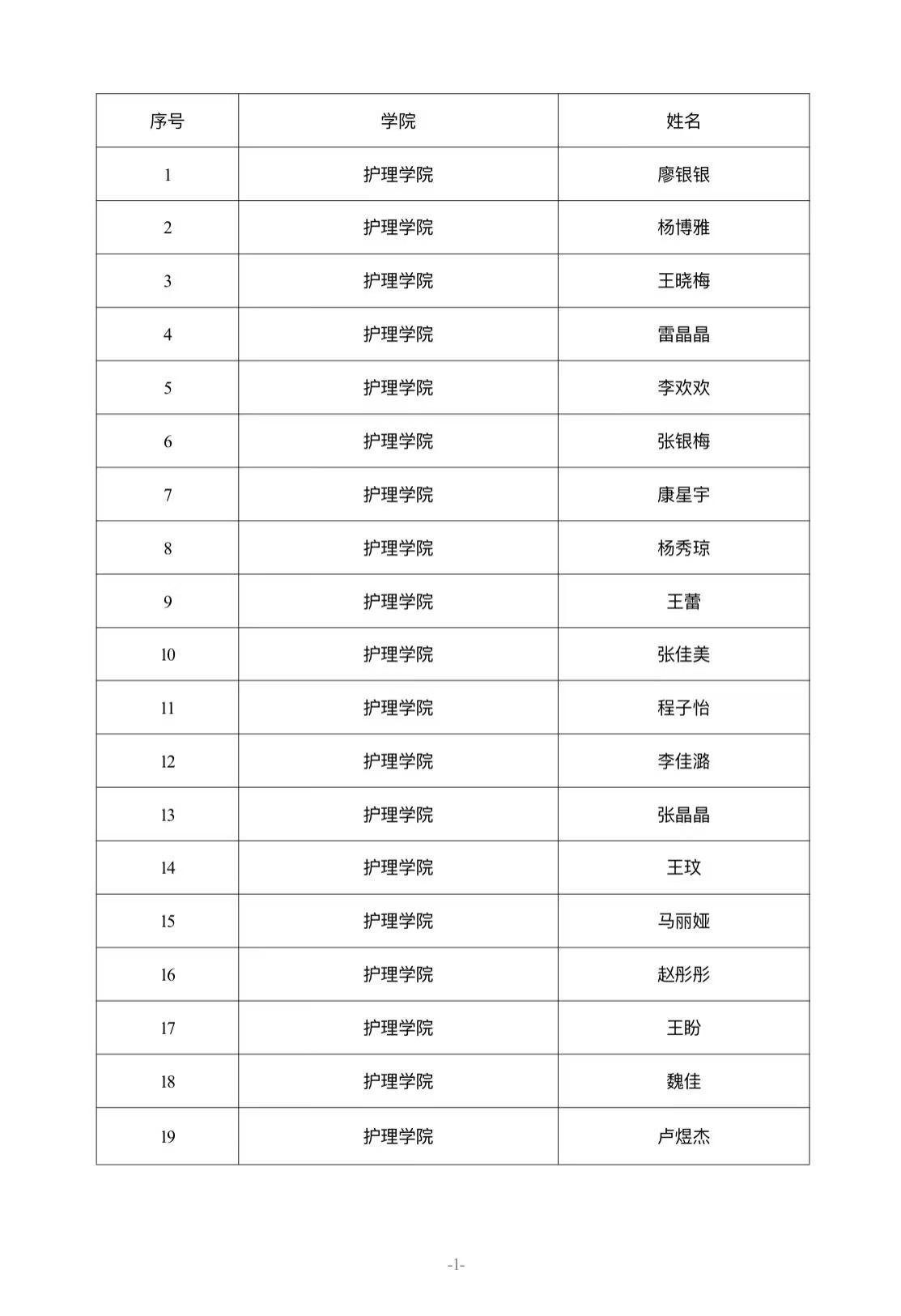 護(hù)理學(xué)院關(guān)于學(xué)校獎(jiǎng)學(xué)金推薦人選的公示