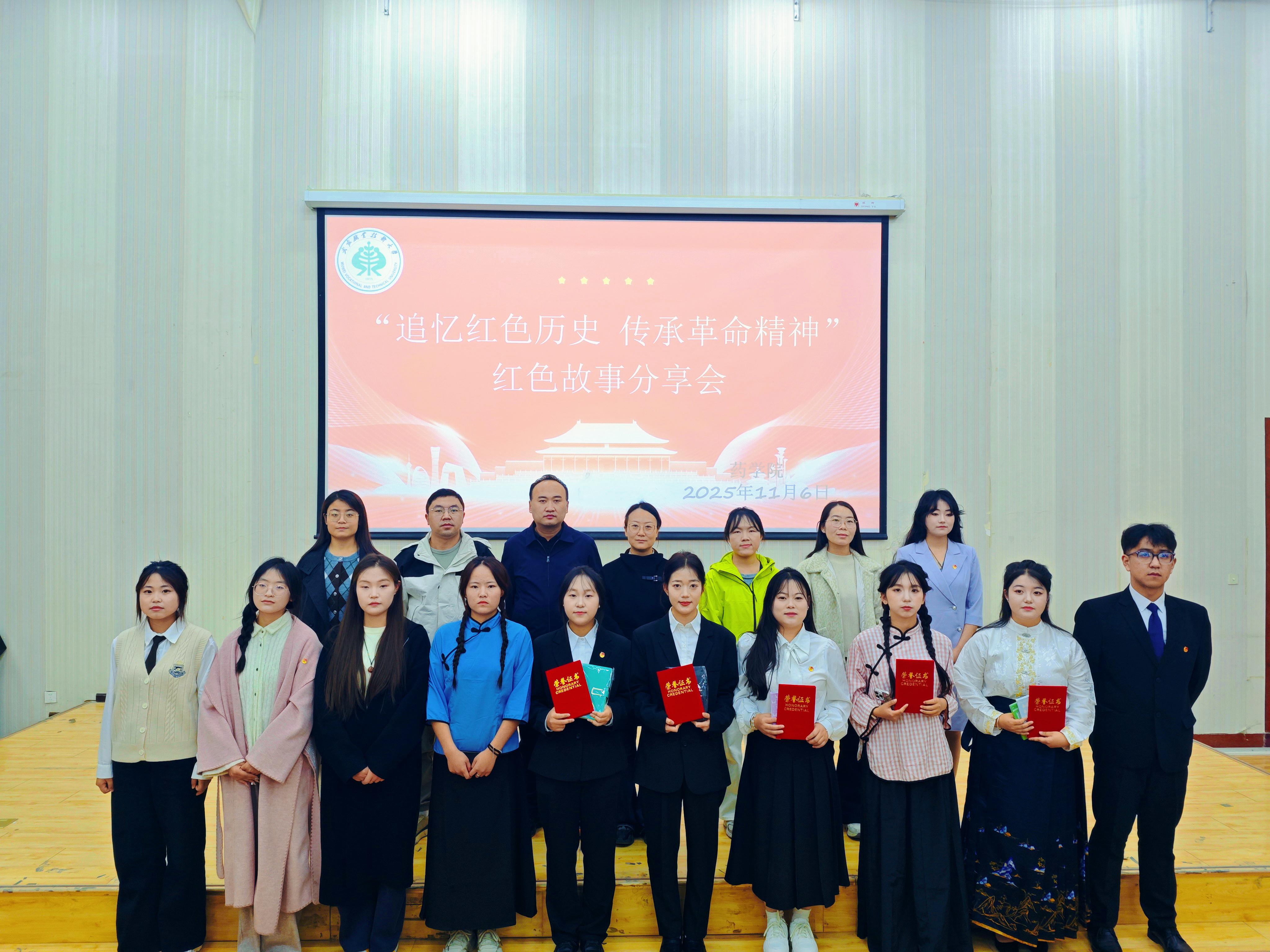紅色盛宴震撼啟幕,各支隊(duì)伍攜優(yōu)秀作品閃亮登場。2024 級中藥學(xué)大專二班伍文娟帶來的《紅色記憶,精神傳承》,字字鏗鏘有力,滿含對革命先輩的赤忱崇敬;2025 級中藥學(xué)大專五班的話劇《覺醒時(shí)代》,生動(dòng)再現(xiàn)革命志士為理想奮勇拼搏的感人場景,讓觀眾仿佛穿越時(shí)空,置身風(fēng)雨如晦的往昔。振奮人心的展演過后,優(yōu)秀隊(duì)伍脫穎而出,最終 2025 級中藥學(xué)大專五班的《覺醒時(shí)代》斬獲一等獎(jiǎng)。學(xué)院領(lǐng)導(dǎo)為獲獎(jiǎng)學(xué)子頒發(fā)榮譽(yù)證書,給予充分肯定。這份榮譽(yù)既是鼓勵(lì)更是期許,激勵(lì)全體學(xué)子以榜樣為帆,將紅色基因融入學(xué)習(xí)之路,讓革命精神代代相傳。