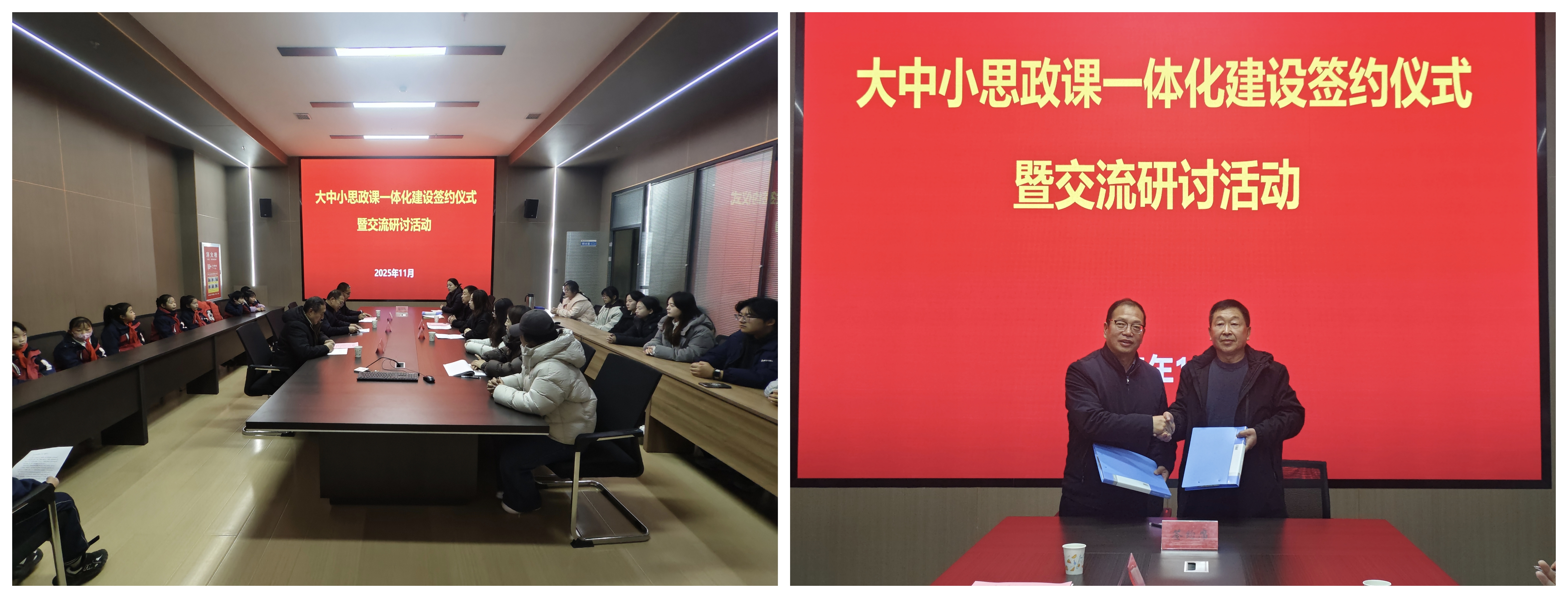 簽約儀式上,劉心和徐主年分別致辭,雙方共同簽署了《大中小學(xué)思政課一體化共建協(xié)議書》,并圍繞共建目標(biāo)、合作內(nèi)容與實(shí)施機(jī)制進(jìn)行了深入交流。此次合作簽約為院校雙方搭建了資源共享、優(yōu)勢(shì)互補(bǔ)、協(xié)同育人的平臺(tái),希望雙方在師資隊(duì)伍共建、實(shí)踐資源共享、課程創(chuàng)新突破等方面多維度協(xié)同推進(jìn),不斷探索一體化建設(shè)的長效機(jī)制,打破各學(xué)段在課程、資源、師資等方面的壁壘,實(shí)現(xiàn)有機(jī)銜接,促進(jìn)優(yōu)質(zhì)教學(xué)經(jīng)驗(yàn)互鑒、特色教學(xué)模式推廣,共同提升立德樹人效果。