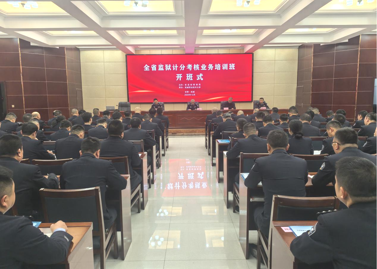 12月9日,由甘肅省監(jiān)獄管理局主辦、武威職業(yè)技術(shù)大學(xué)承辦的全省監(jiān)獄系統(tǒng)計(jì)分考核業(yè)務(wù)培訓(xùn)班在武威職業(yè)技術(shù)大學(xué)行樹樓北側(cè)報(bào)告廳順利開班。省監(jiān)獄管理局獄政處處長萬鵬宇,學(xué)校黨委委員、副校長王守云,武威監(jiān)獄政委陳源出席開班式,全省各監(jiān)獄系統(tǒng)93名參訓(xùn)干部參加培訓(xùn)。省監(jiān)獄管理局獄政處四級調(diào)研員李剛軍主持開班儀式。