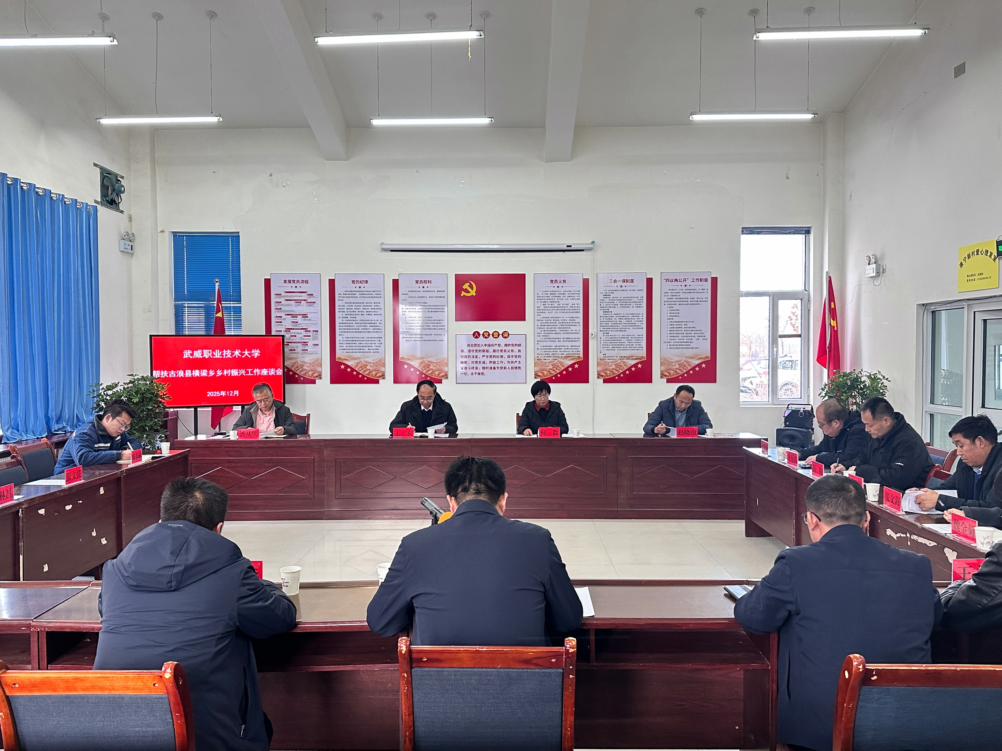 12月9日,黨委書記王宏帶隊到古浪縣橫梁鄉(xiāng)幸福新村、康寧新村,實地調研鄉(xiāng)村振興幫扶項目進展,并召開校地幫扶工作座談會。黨委委員、副校長何毅,以及校工會、校辦企業(yè)泰豐新能源有限責任公司相關負責人參加座談會。