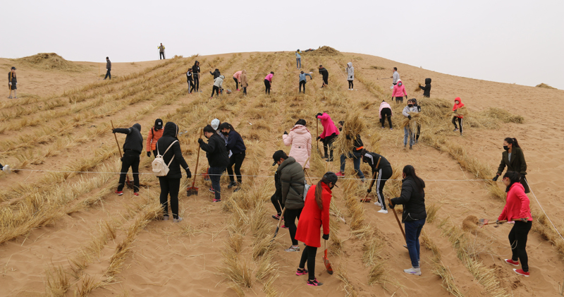 3月12日,在第39個“植樹節(jié)”到來之際,按照市上統(tǒng)一安排,學(xué)院領(lǐng)導(dǎo)帶隊400余名師生前往古浪縣陸港北部沙漠腹地開展義務(wù)壓沙勞動,勞動現(xiàn)場,學(xué)院領(lǐng)導(dǎo)和師生們不畏春寒,在技術(shù)人員的指導(dǎo)下,揮锨鏟沙、蒲草培沙、勞動現(xiàn)場熱火朝天,整齊的稻草方格逐漸覆蓋了一個個沙丘。通過一天的勞動,圓滿完成了壓沙任務(wù),以實際行動為保護(hù)環(huán)境、建設(shè)生態(tài)文明美麗武威做出了應(yīng)有貢獻(xiàn)。