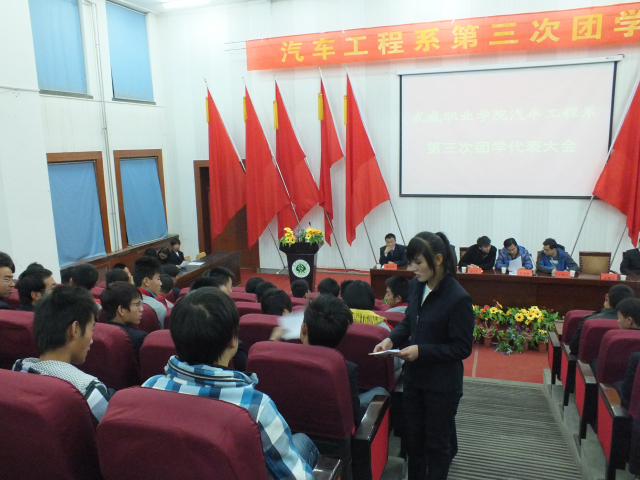 大會(huì)在莊嚴(yán)雄洪的國(guó)歌聲中開(kāi)幕,本次改選大會(huì)由候選人謝家亮主持。首先許成林老師致開(kāi)幕辭,宣布大會(huì)開(kāi)始。各位候選人對(duì)全體師生進(jìn)行自我介紹,來(lái)為自己競(jìng)選團(tuán)學(xué)干部拉票升勢(shì)。緊接著進(jìn)入上屆優(yōu)秀的團(tuán)干部進(jìn)行表彰獎(jiǎng)勵(lì),由上屆秘書長(zhǎng)蔣俊杰作了工作總結(jié)、學(xué)習(xí)部部長(zhǎng)白飛志、體育部部長(zhǎng)牛舂興、候選人李海龍依次宣讀與本次大會(huì)相關(guān)的問(wèn)題;隨后進(jìn)入投票環(huán)節(jié),其中有51名代表選出37名優(yōu)秀的學(xué)生干部。最后是緊張的“投票與唱票”環(huán)節(jié),并由劉吉仁老師宣布結(jié)果:“本屆學(xué)生會(huì)改選大會(huì)51票高數(shù)通過(guò),37名同學(xué)當(dāng)選學(xué)生會(huì)干部。汽車工程系團(tuán)學(xué)會(huì)在充滿希望的同時(shí)會(huì)有更大的創(chuàng)新。