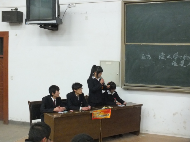 11月28日晚,我院第五屆大專辯論賽復(fù)賽第二場(chǎng)比賽在西階梯教室舉行。此次辯論賽,電信系作為正方以“讀大學(xué)生長(zhǎng)進(jìn)最大的是知識(shí)”為辯題,我系作為反方以“讀大學(xué)生長(zhǎng)進(jìn)最大的是人格”為辯題。雙方就此展開(kāi)了激烈的辯論。